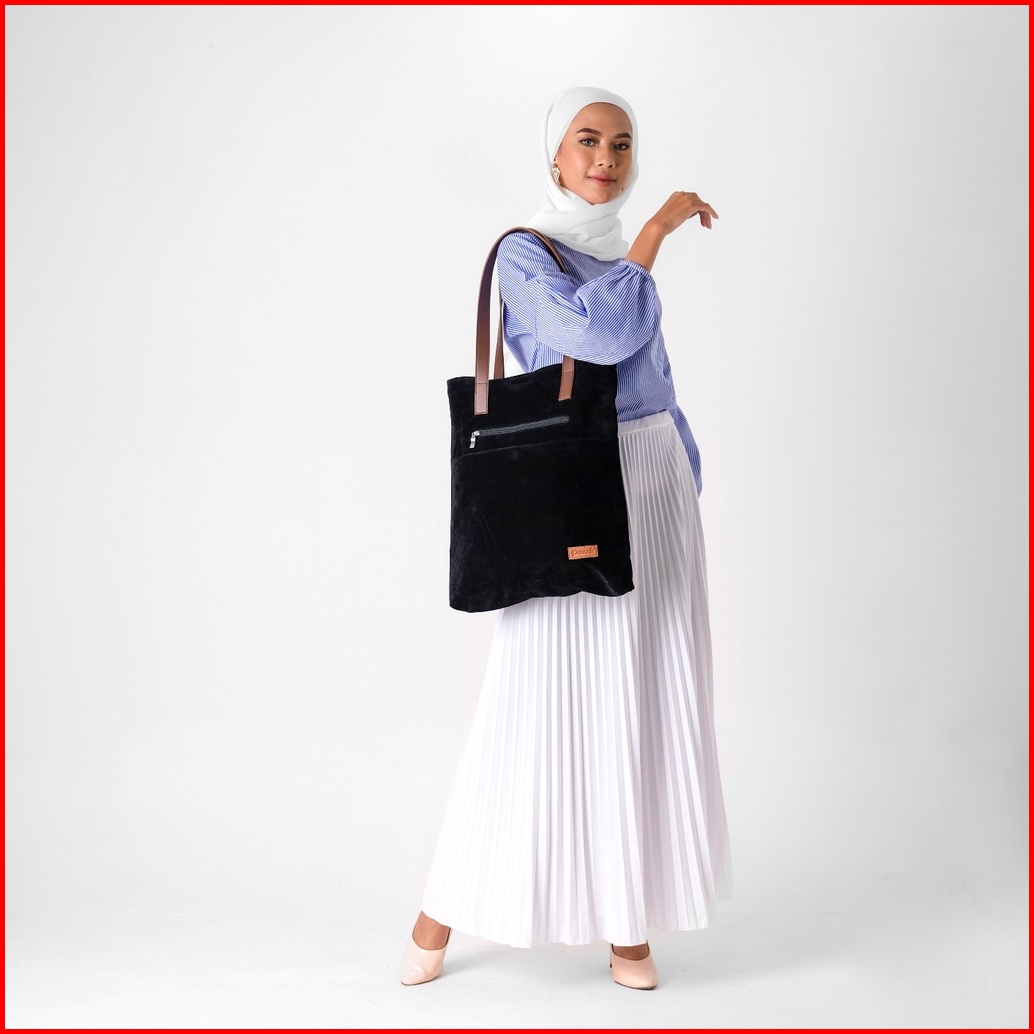 Pamole - Tote Bag Bahan Suede Lembut Lapis Dalam Full Furing Dan Penutup Resleting - Nara Series