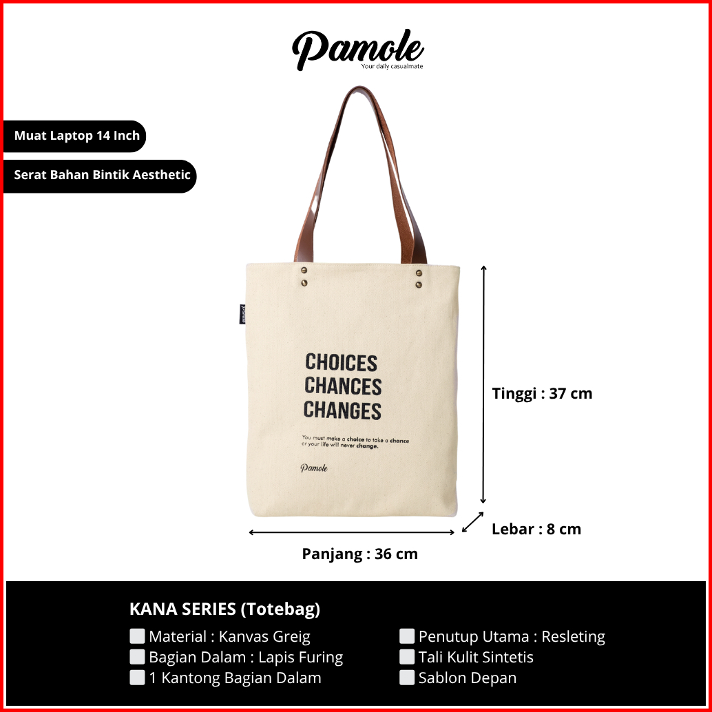 Pamole - Totebag Kerja Totebag Kuliah Totebag Wanita Pria Penutup Resleting - Tote Bag Kana Series