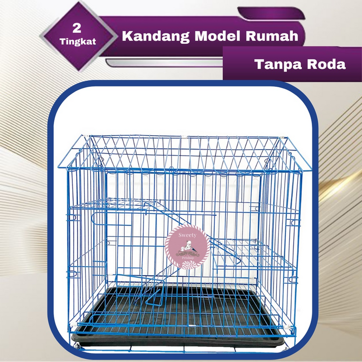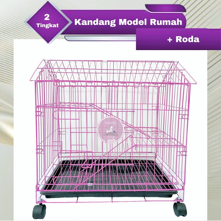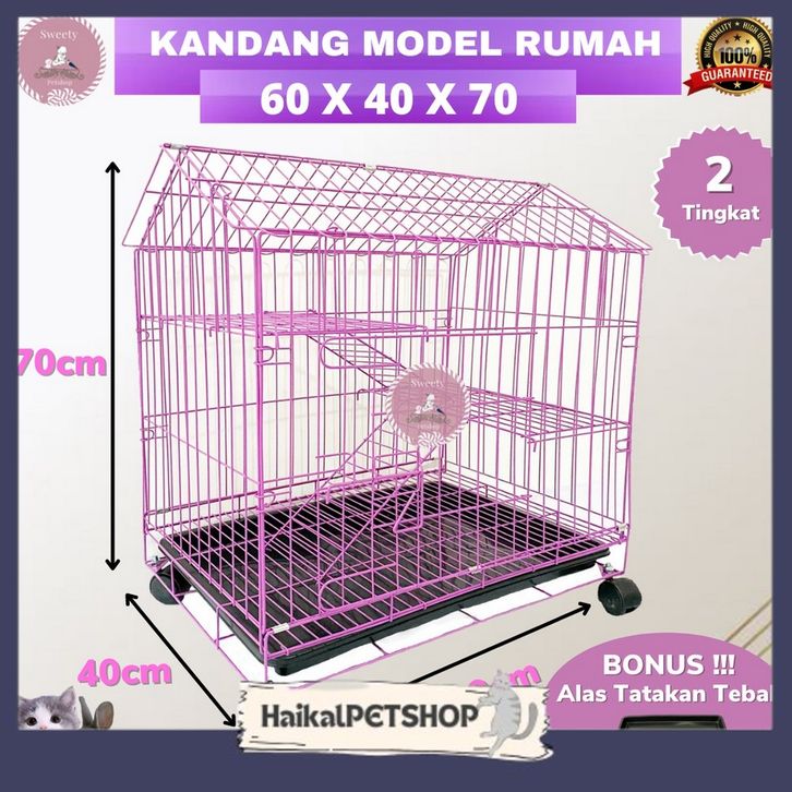 KANDANG KUCING JUMBO UNIK 2 TINGKAT LIPAT MODEL RUMAH 60X40X70 + RODA TERLARIS BEST SELLER