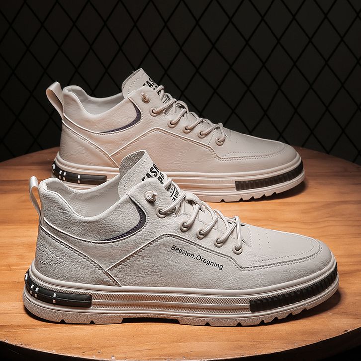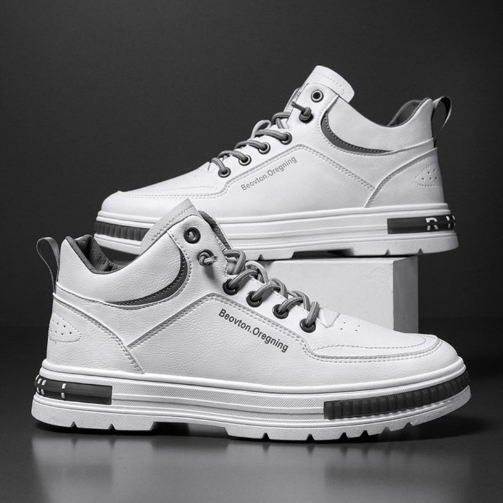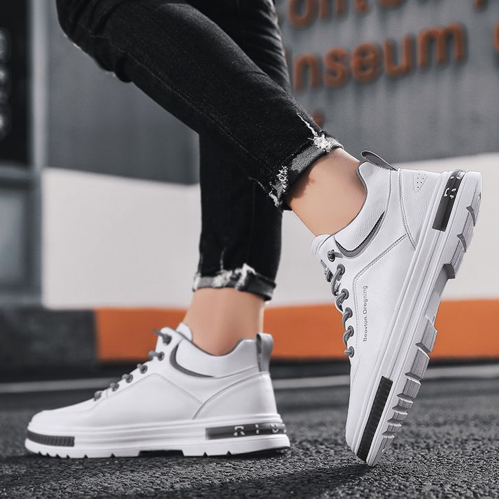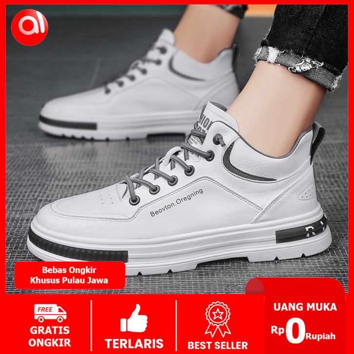 Leedoo Sepatu Kulit Pria Original Kekinian Sneakers Casual Tinggi Kerja Kuliah Sepatu Putih MC449