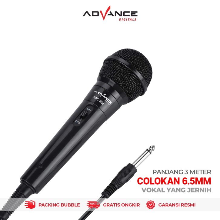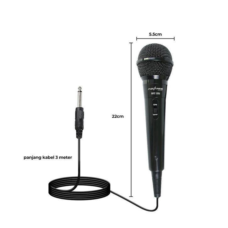 Microphone Mic Karaoke Profesional Advance MIC884 Kabel Mikrofon Dynamic Kualitas Suara Bagus Low Noise Stylish Trend