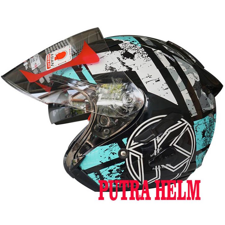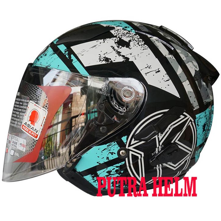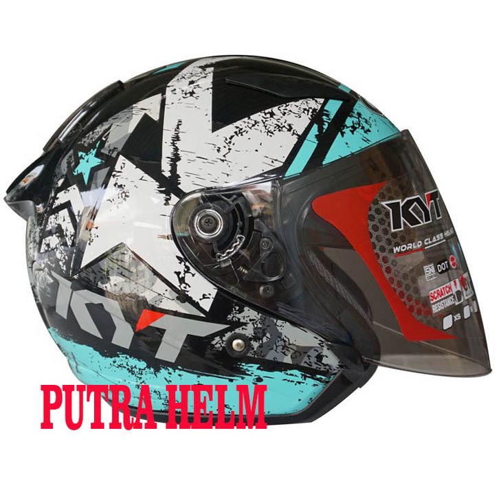 helm kyt galaxy flat r motif #5 black aqua blue original double visor terlaris