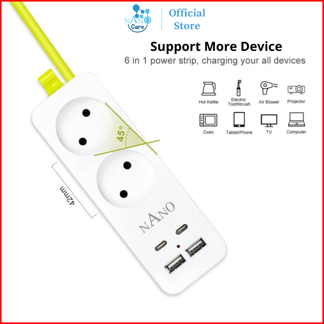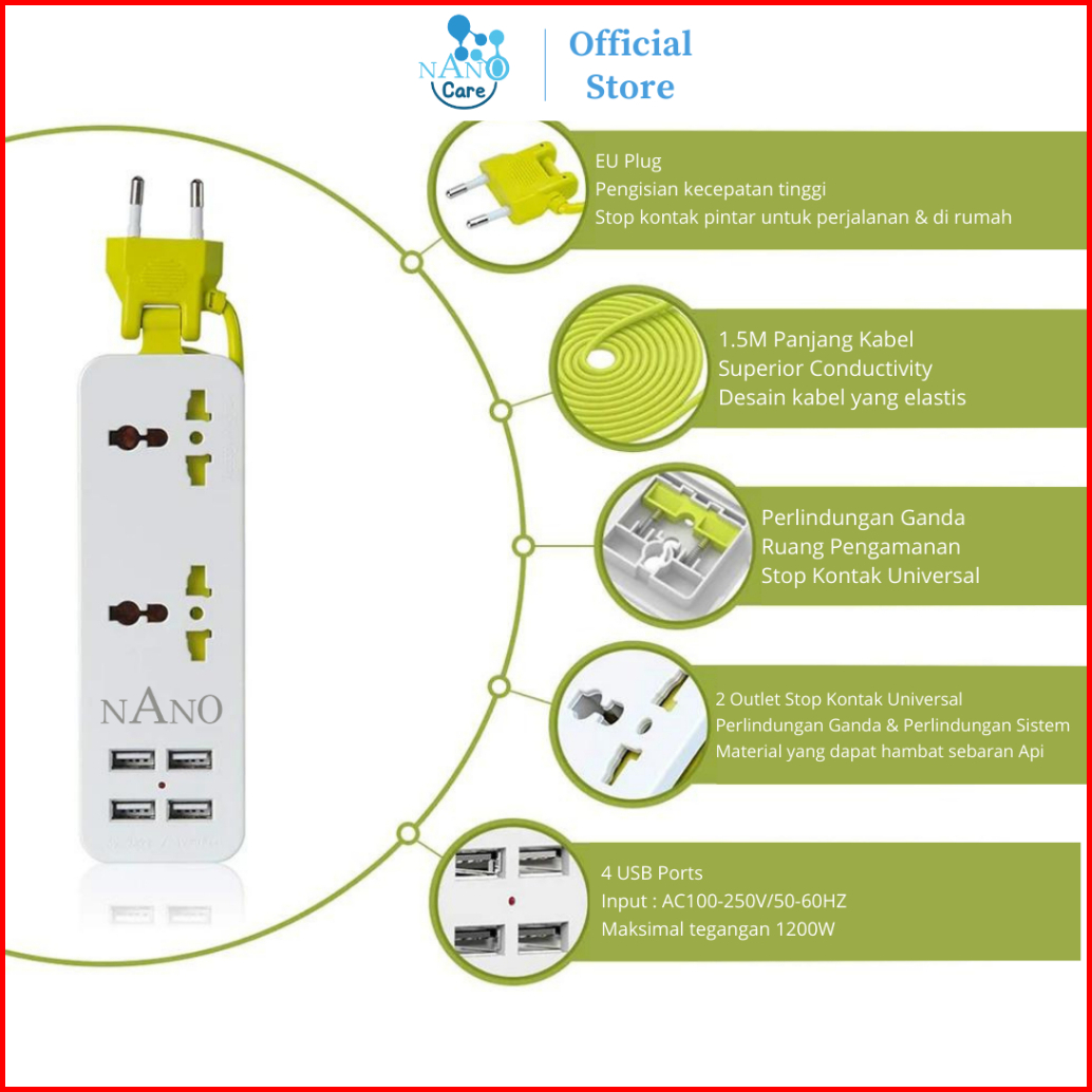 Nano Care Stop Kontak Traveling 2 Lubang Saklar 4 Port Usb 2 Lubang Saklar 2 Port Usb 2type C