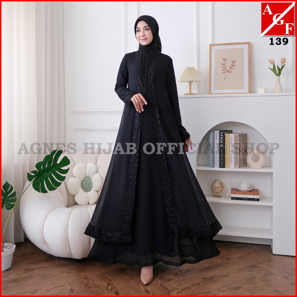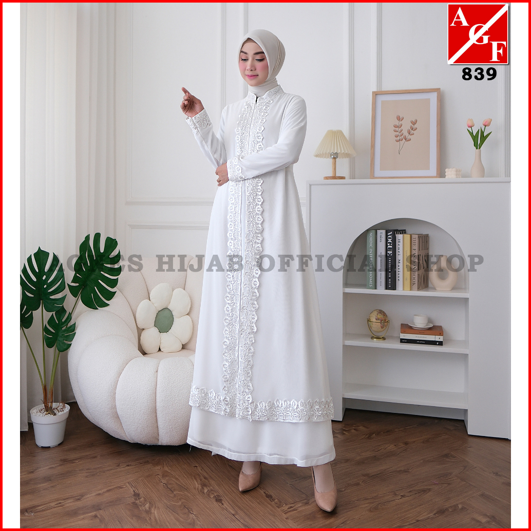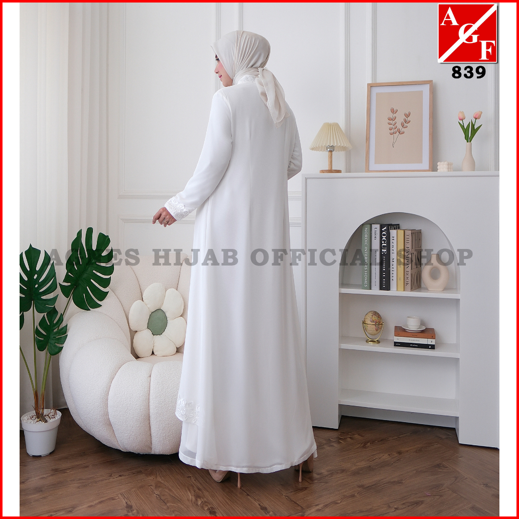 Agnes Hijab - Virly Dress Gamis Putih Baju Muslim Wanita Dewasa Gaun Pesta Remaja Abaya Hitam Simple Elegan Lebaran Haji