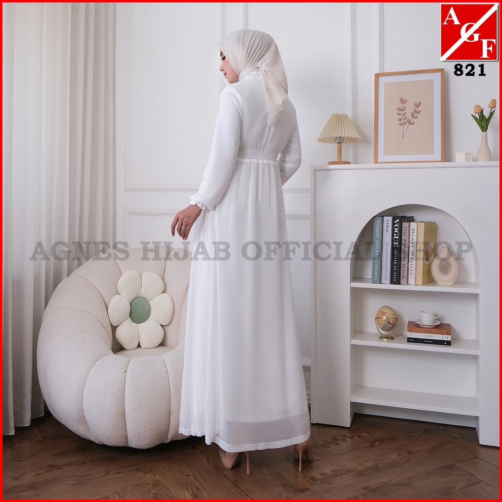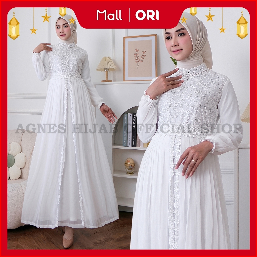 Agnes Hijab - Khairany Dress Gamis Putih Plisket Baju Muslim Dewasa Elegan Gaun Pesta Kondangan Lebaran Haji Umroh Terba