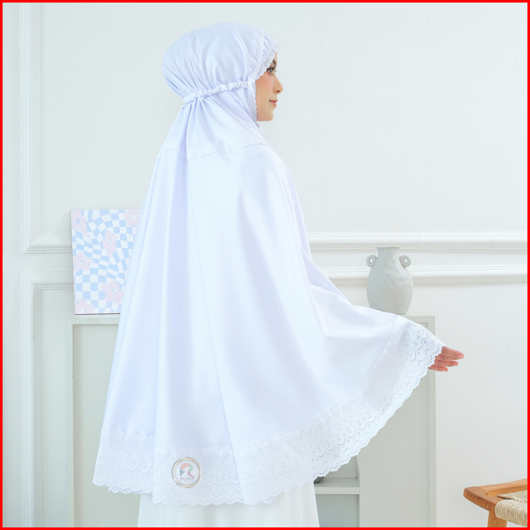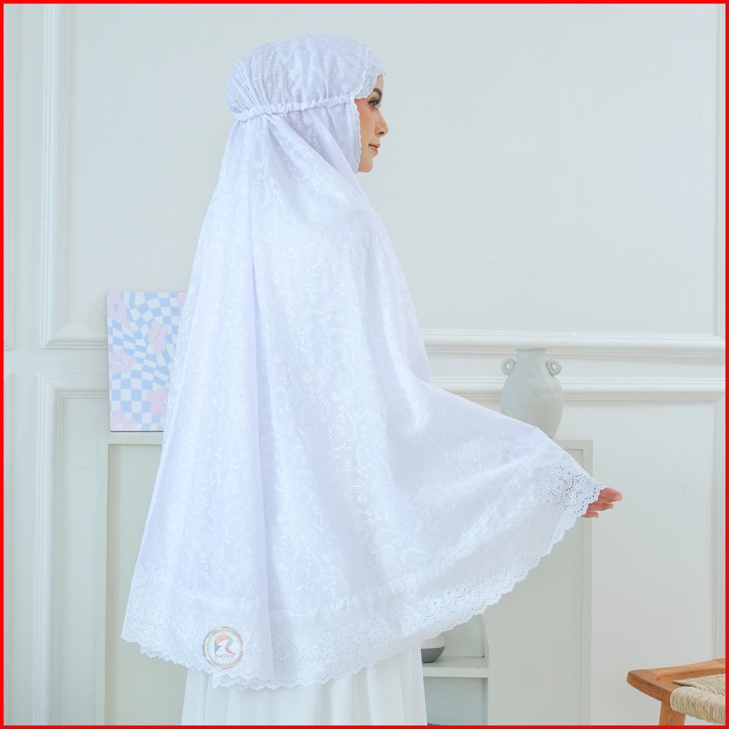 Raisma - Bergo Putih Bahan Katun Jepang Motif Bordir Cantik Dan Adem 002 Perlengkapan Umroh Wanita