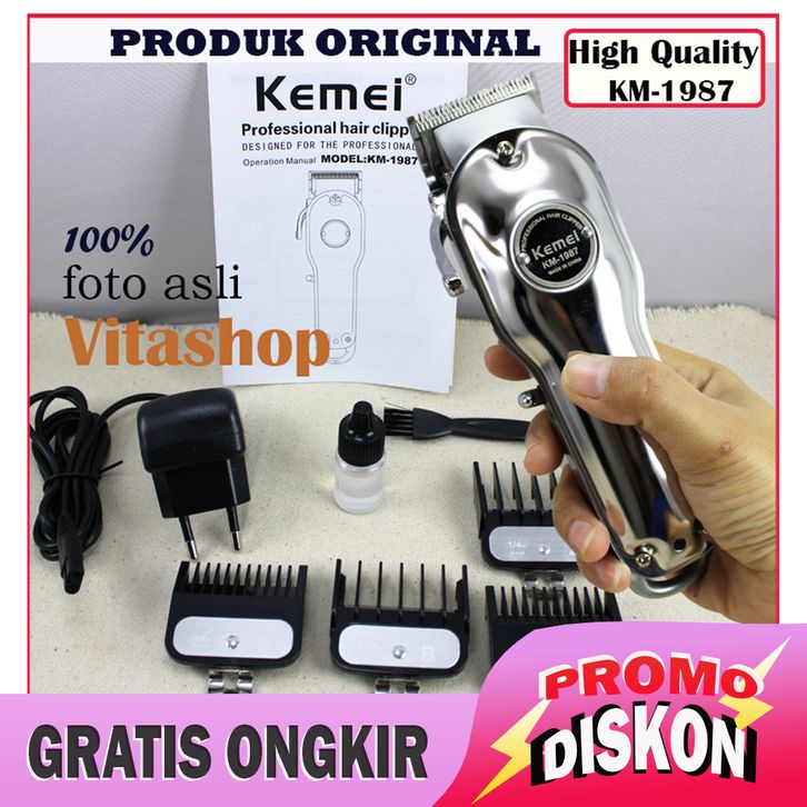 [Mall] Tanpa DP ALAT CUKUR RAMBUT KEMEI KM-1987 SILVER HAIR CLIPPER MESIN POTONG RAMBUT