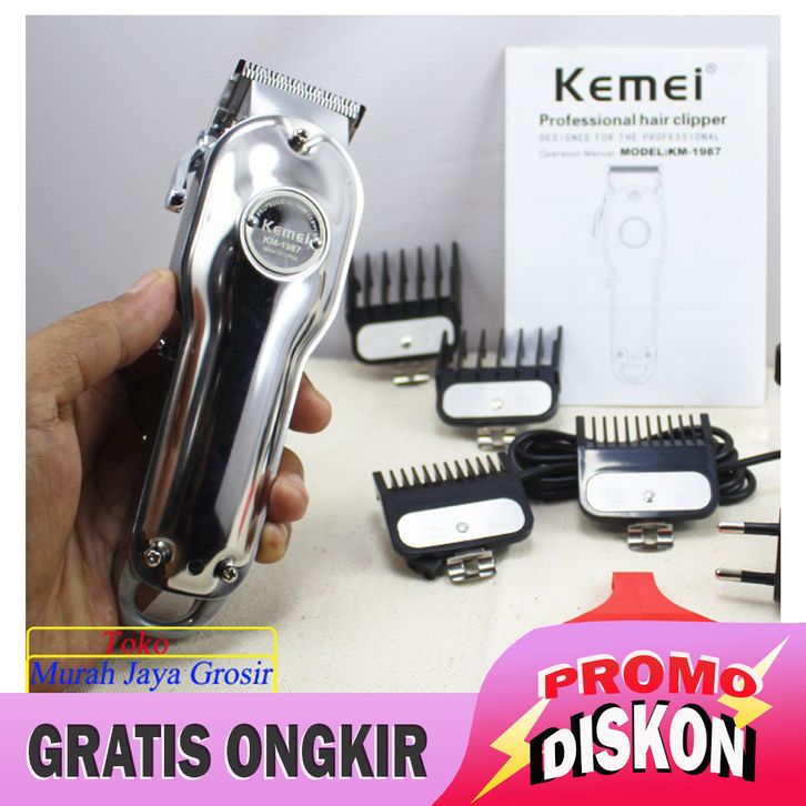 [Mall] Tanpa DP KEMEI KM 1987 PERAK ALAT MESIN CUKUR RAMBUT CORDLLESS GUNTING RAMBUT CAS