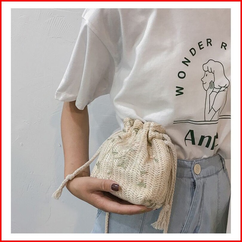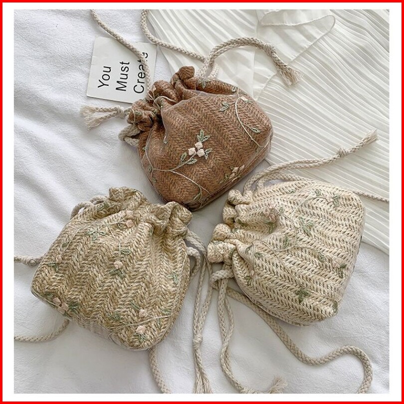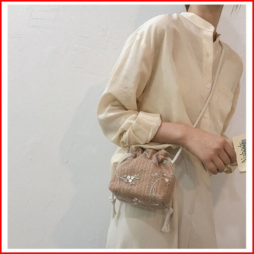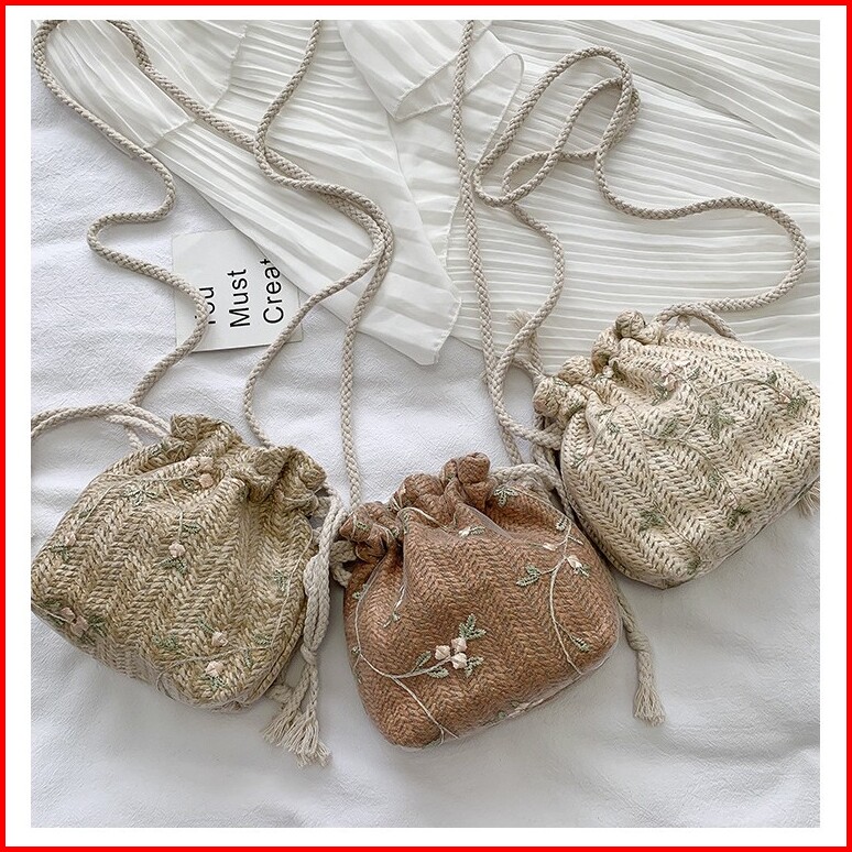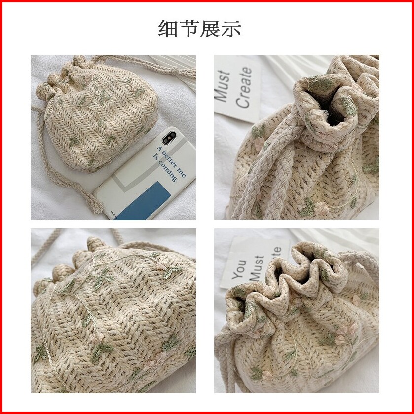 Tas Selempang Bucket Serut Bahan Anyaman Motif Bunga Lace Tas Serut Lace Flower Kirim Dari Jakarta