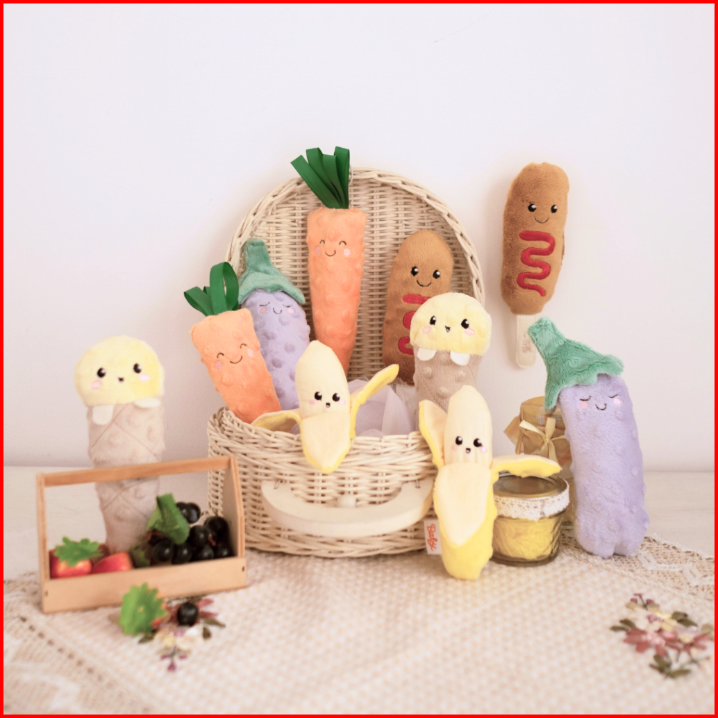 Bread, Tomato Ketchup, Rocket, Carrot, Cactus, Daisy, Banana, Ice Cream, Eggplant, Corndog