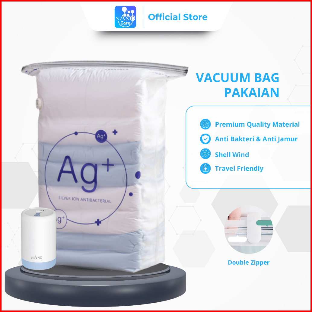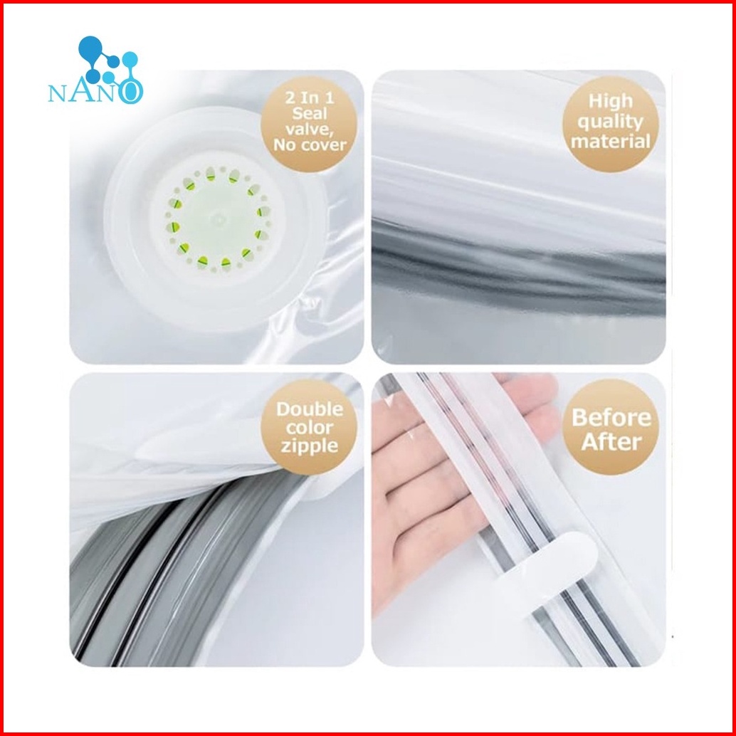 Nano Care Vacuum Bag Plastik Pakaian Tanpa Pompa Vakum Baju Travel Laundry Bag Waterproof