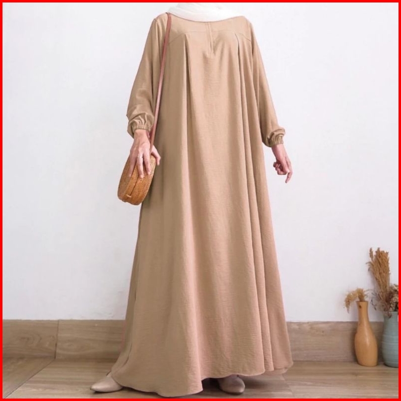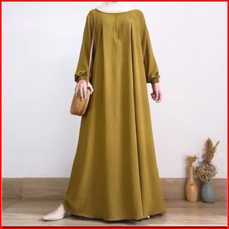Gamis Polos Super Jumbo Ld 140 Terbaru Dengan Bahan Crinkle Airflow Gamis Muslim Busui Sleting