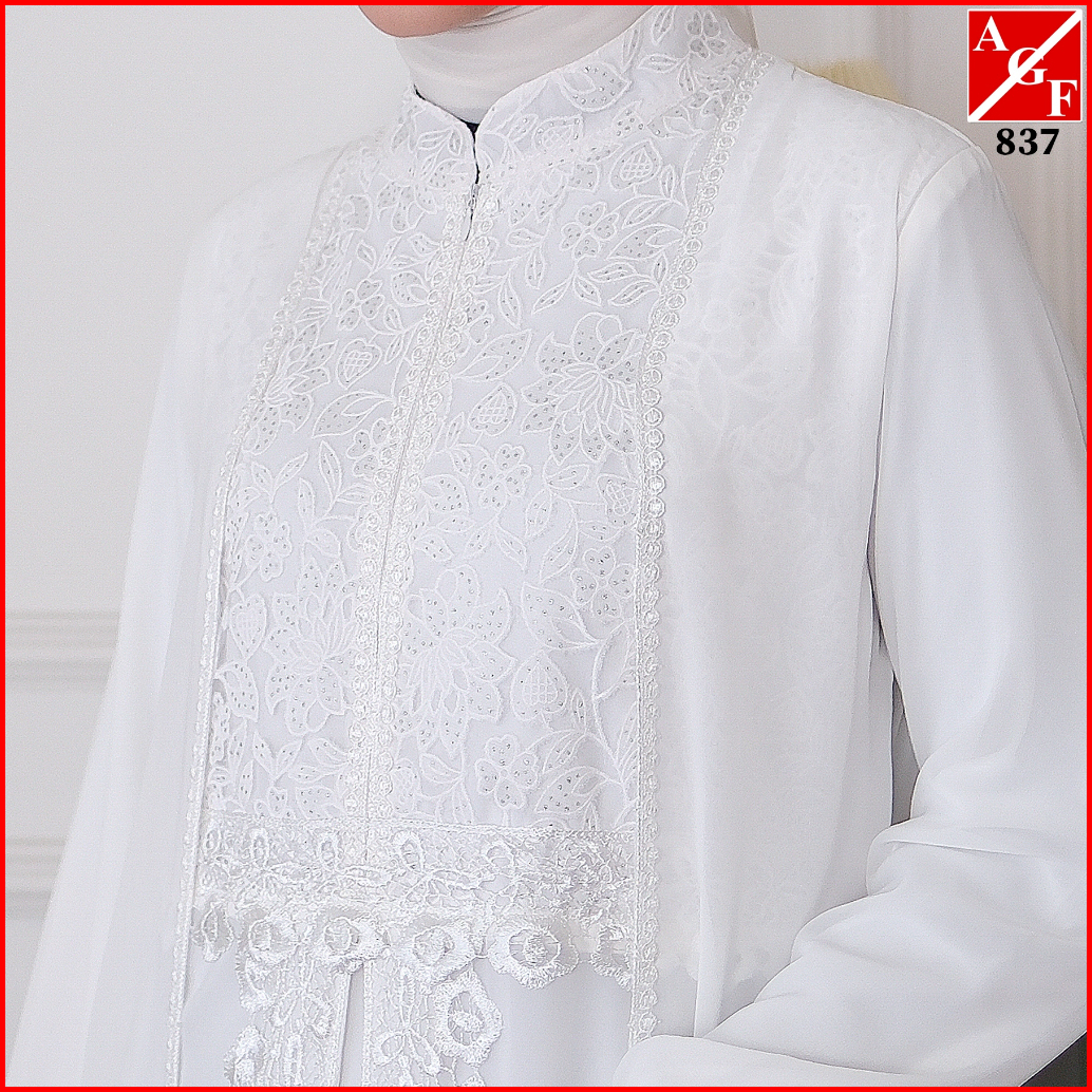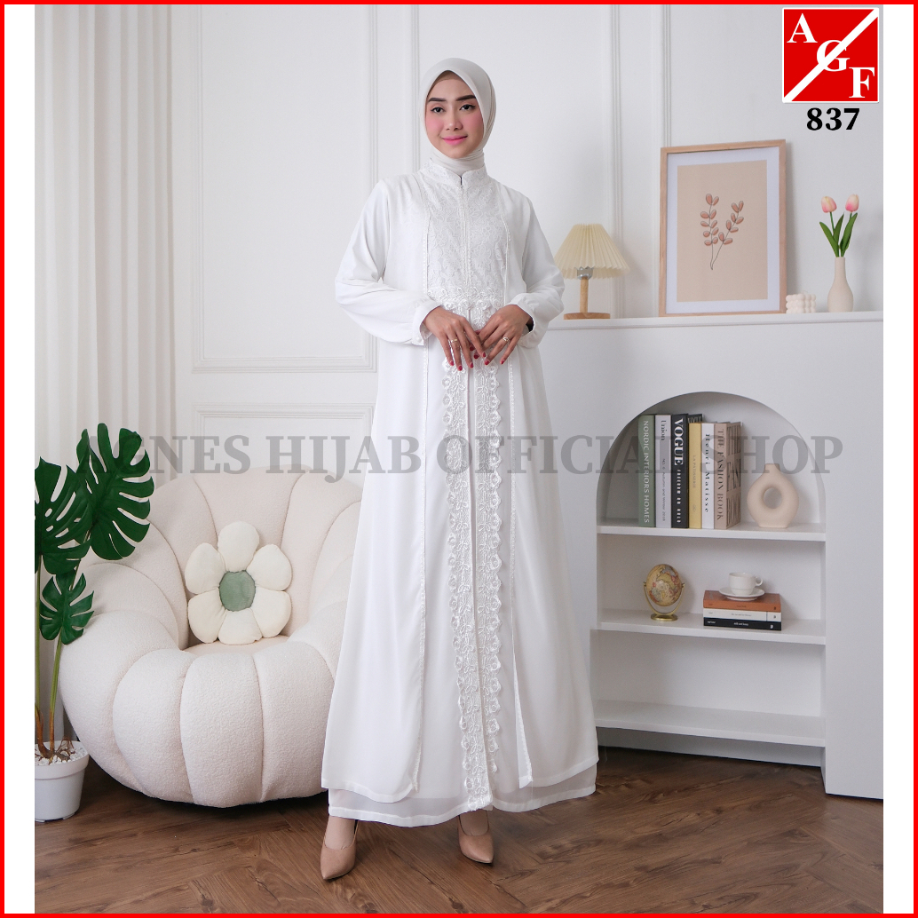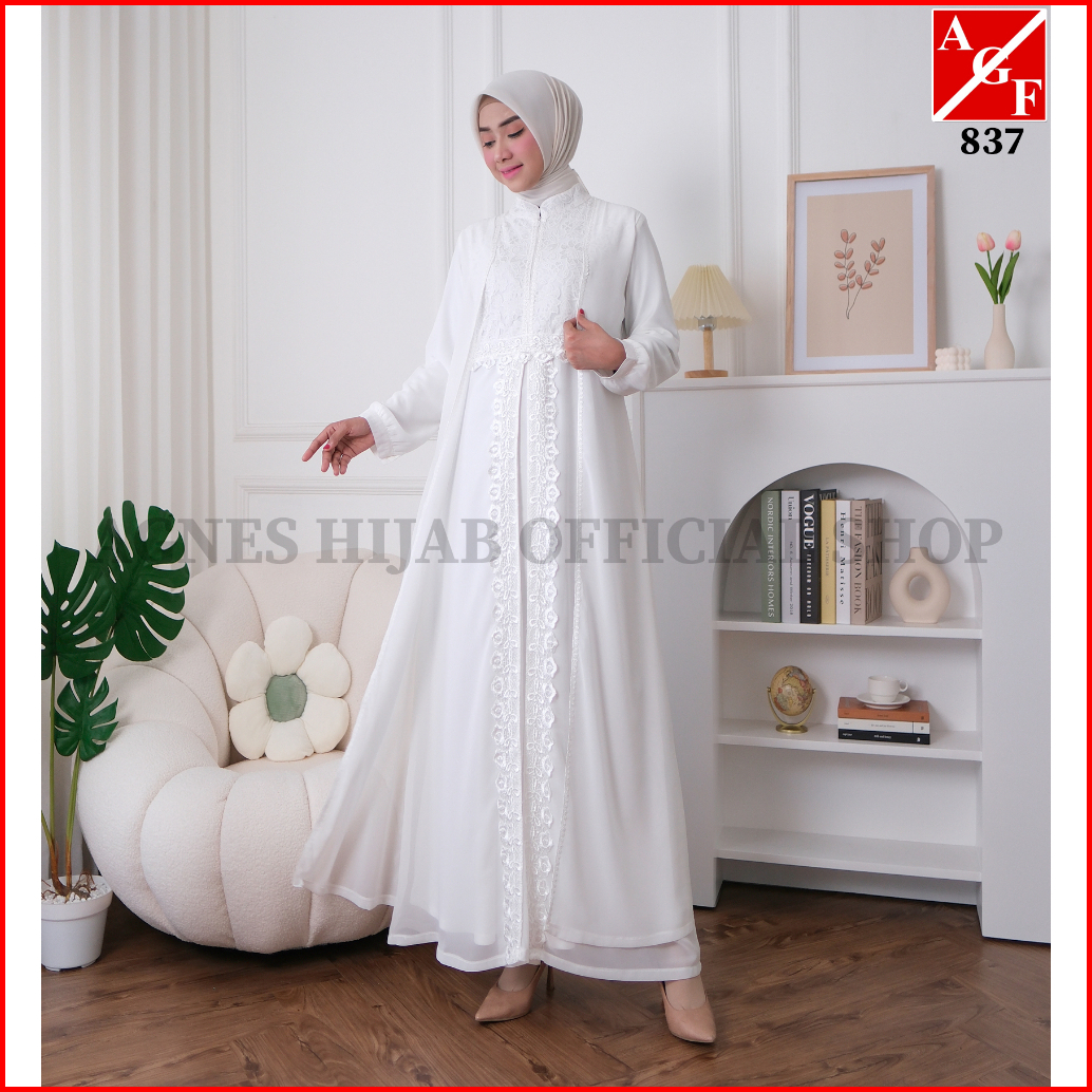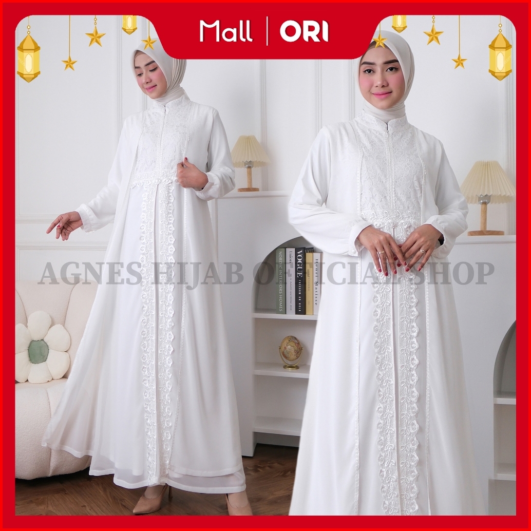 Agnes Hijab - Zaina Dress Gamis Putih Baju Muslim Wanita Dewasa Mewah Gaun Pesta Kondangan Remaja Simple Elegan Lebaran