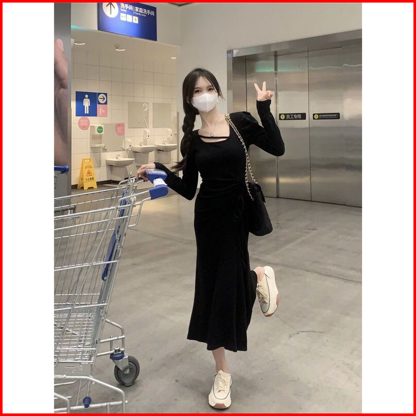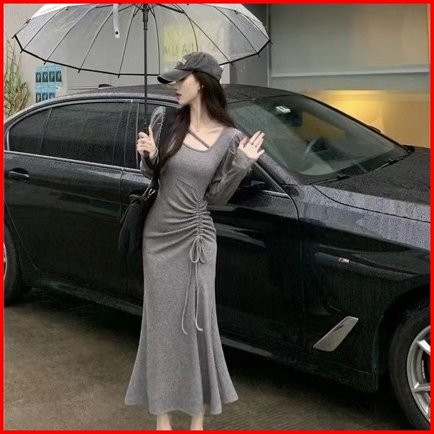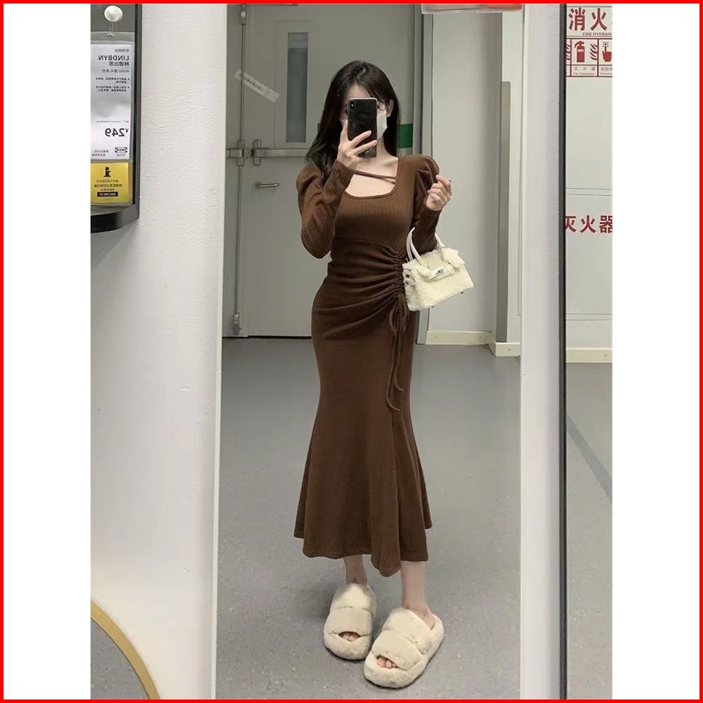 First Girl-gaun Wanita Basic Knit Slim Long Sleeve Dress Bodycon Baju Dress Wanita- G009