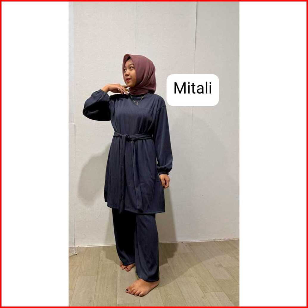 D - Oneset Hammi Long Tunik Belah Samping Tali Pinggang