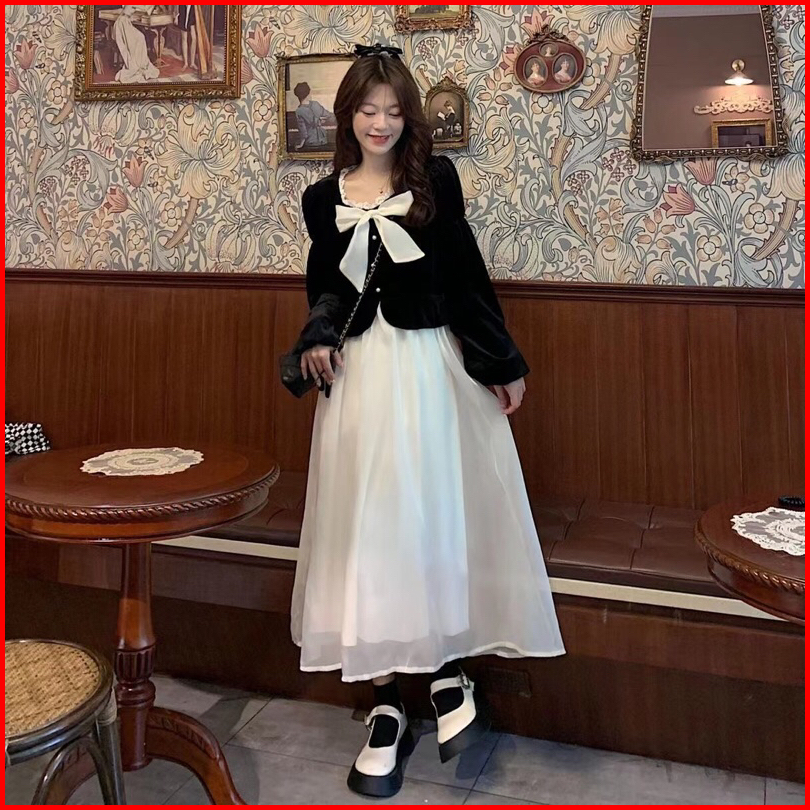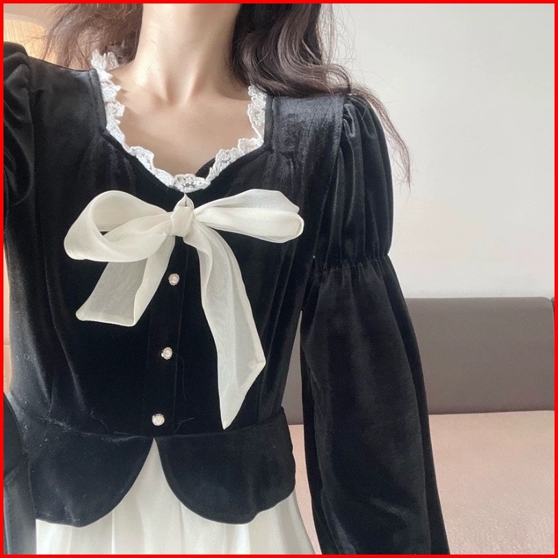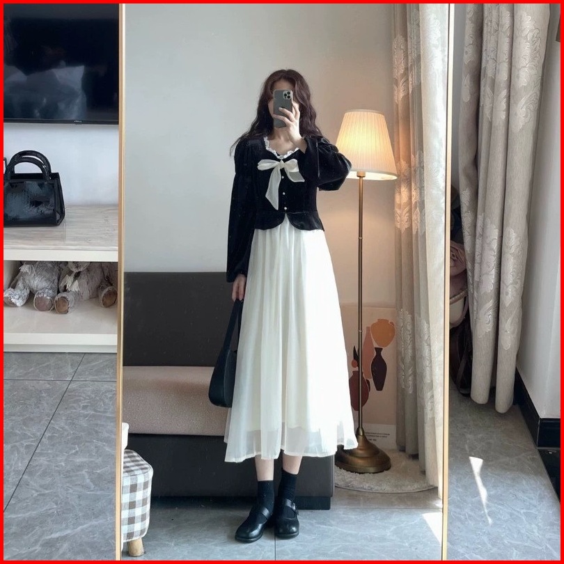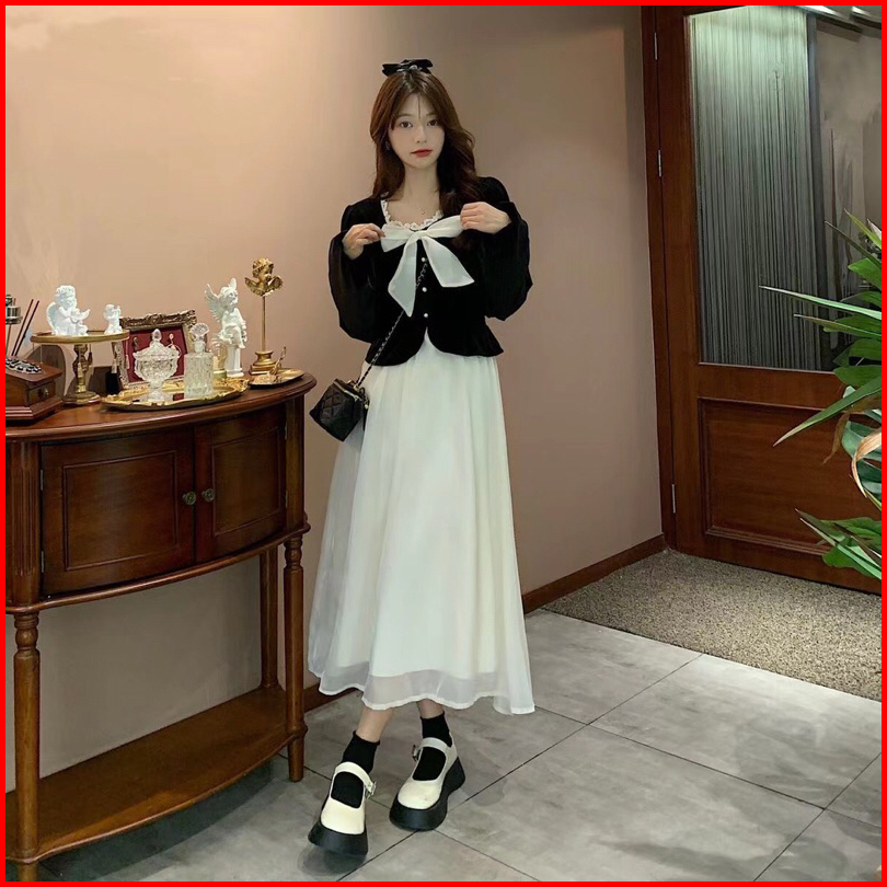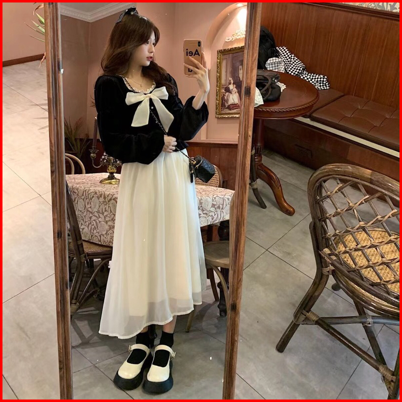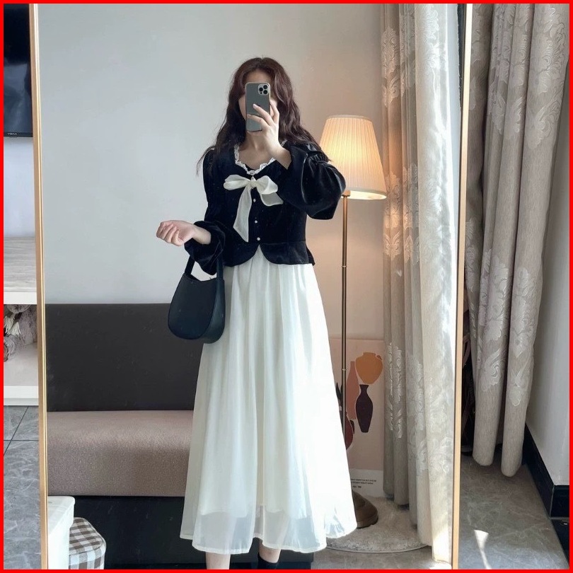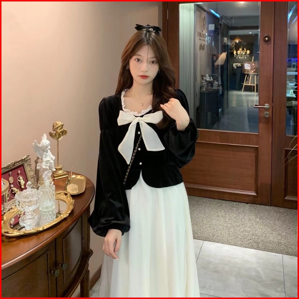 First Girl-setelan Sambung Gaun Bludru Gaya Perancis Dress Lucu - G026