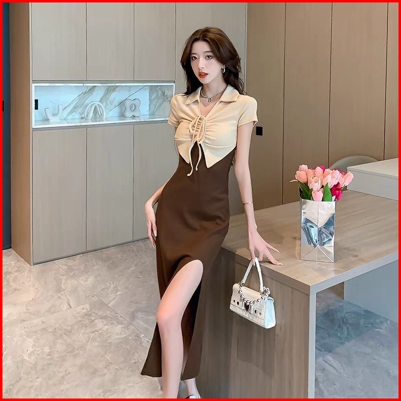 First Girl-gaun Kerah Serut Pas Body Lengan Pendek Dres Korea Dress Lengan Pendek 117 - G015