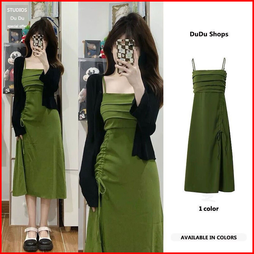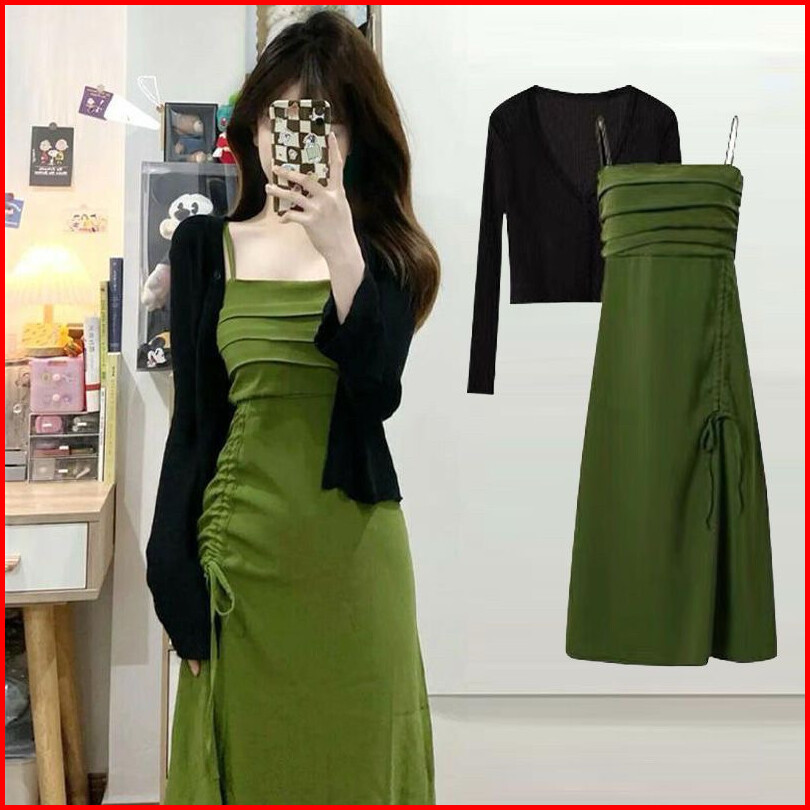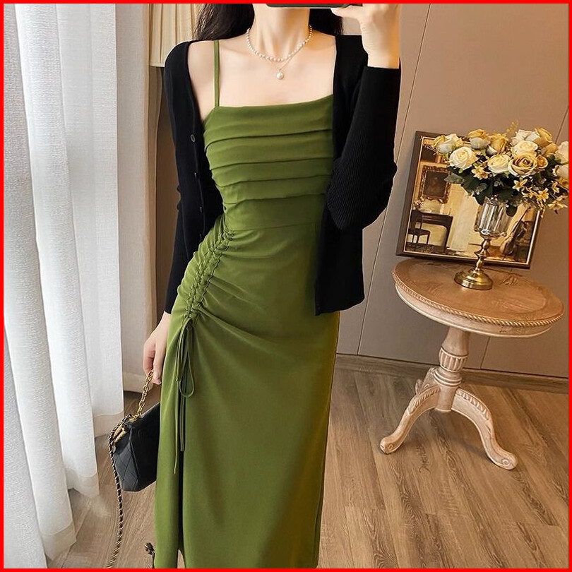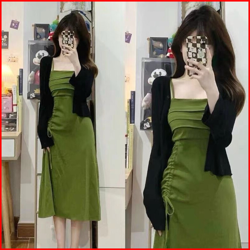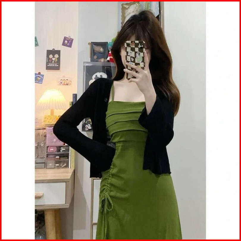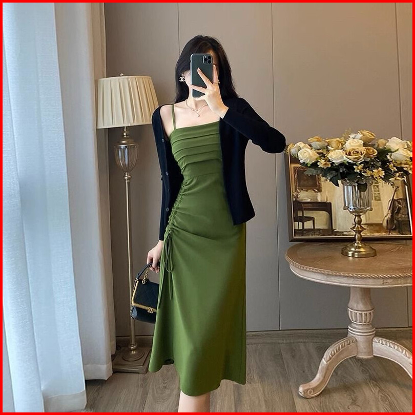 Susana Id Midi Dress Shaved Tape With Cardigan Korean Version D164