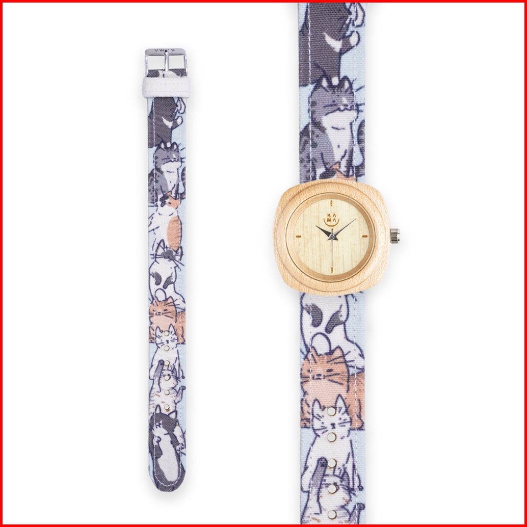Jam Tangan Kayu Kama Watch Edisi Strap Cat