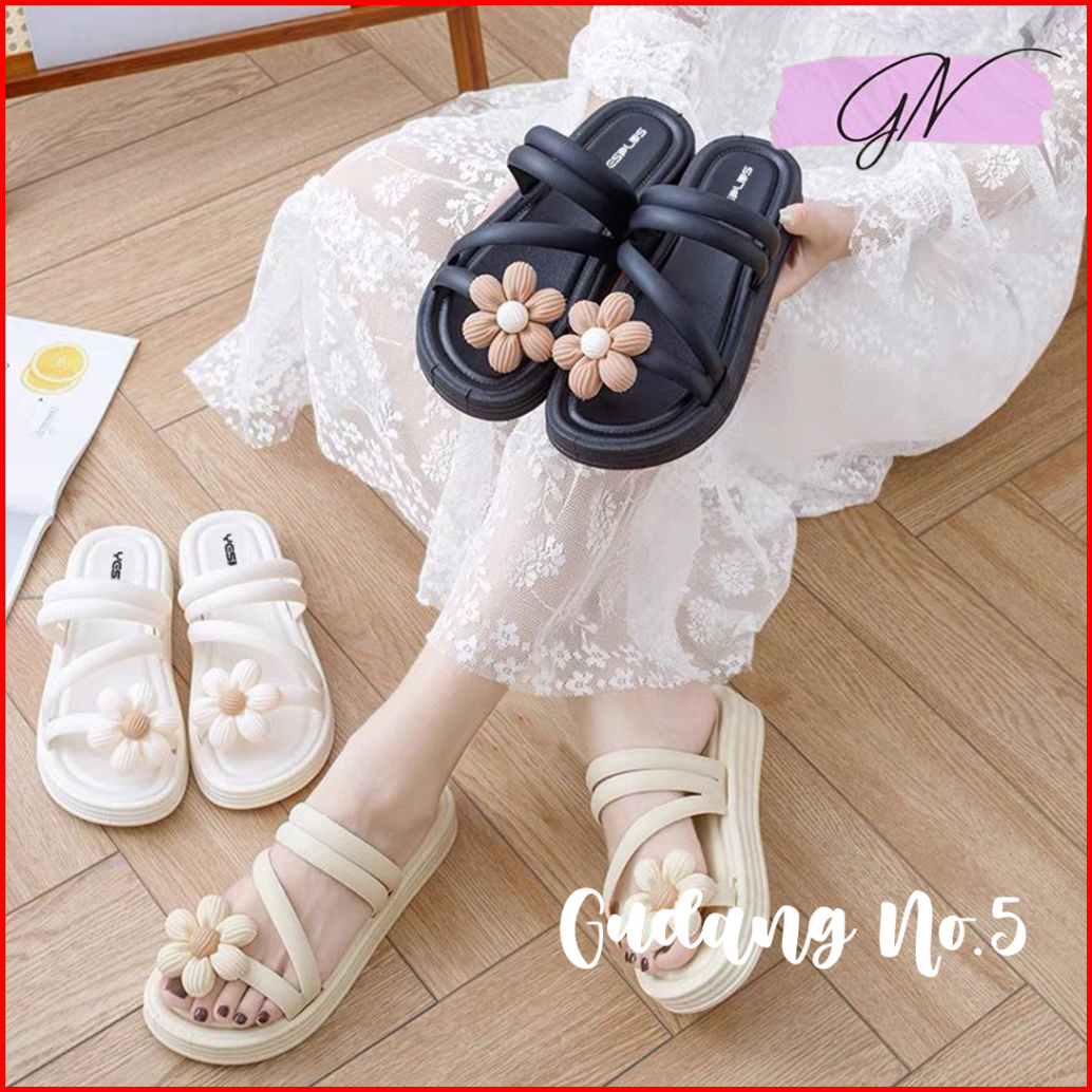 Gn-2310 Sandal Selop Jelly Sandal Wanita Tali Model Bunga Fashion Import Pcu