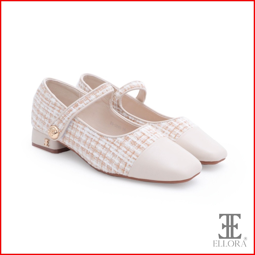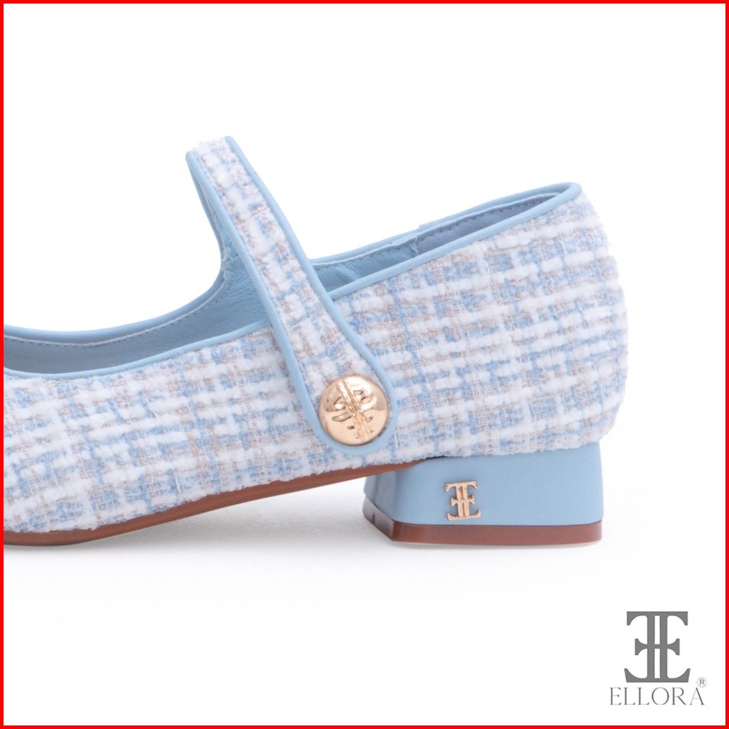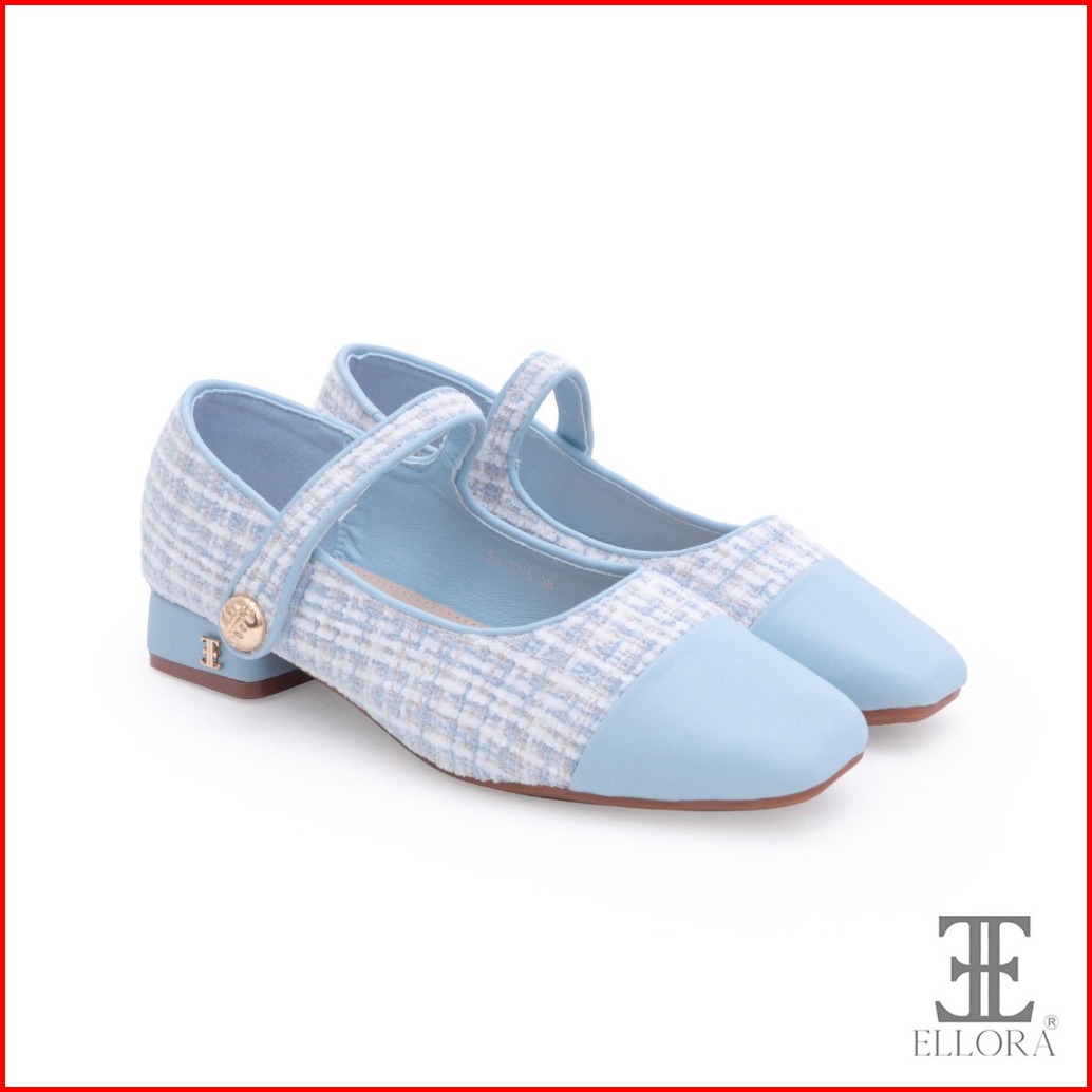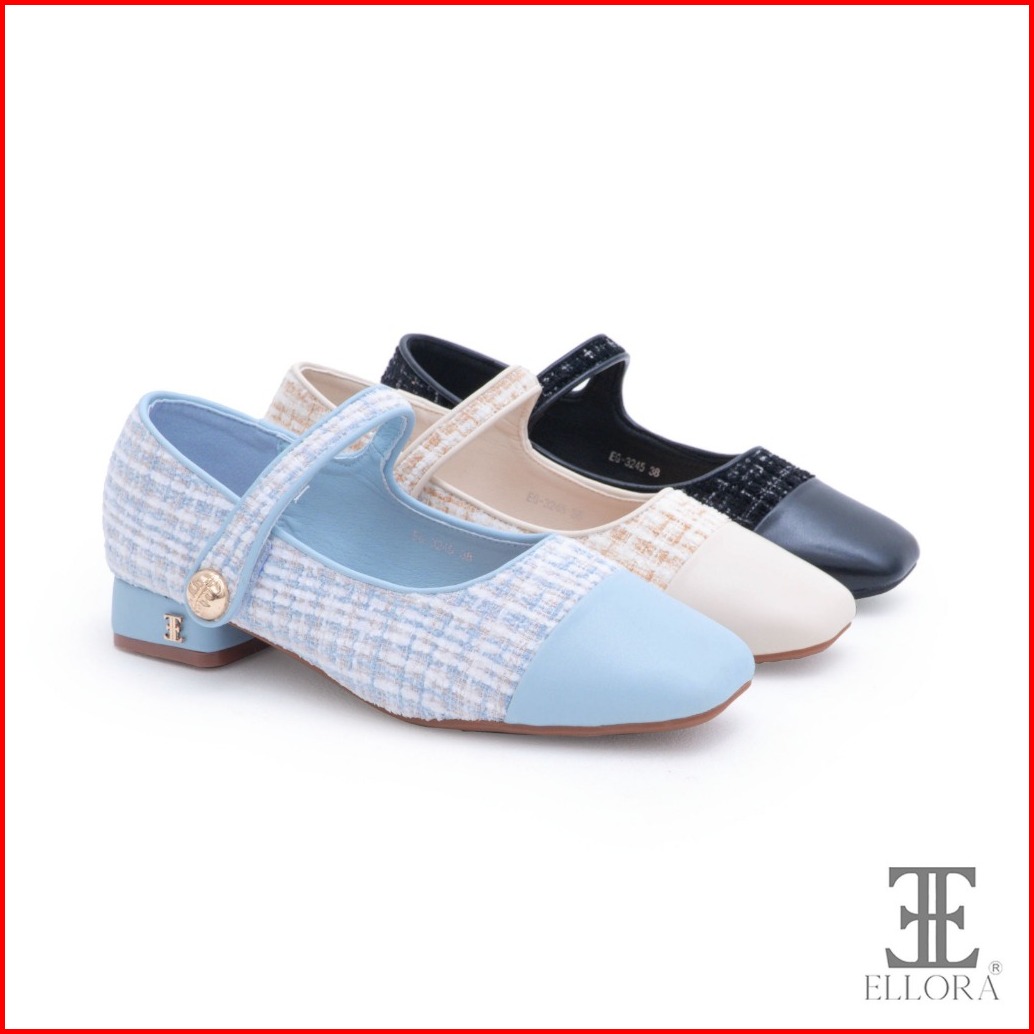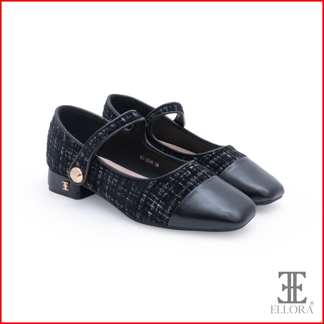 Ellora Eg-3245 Sepatu Wanita Hak Chunky Heels 2.5cm Bahan Tweed