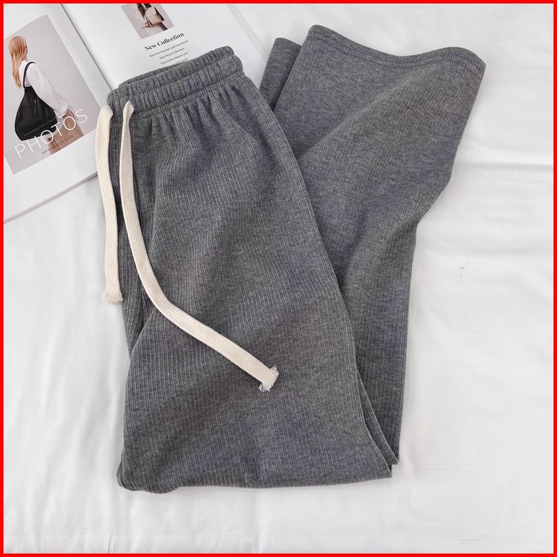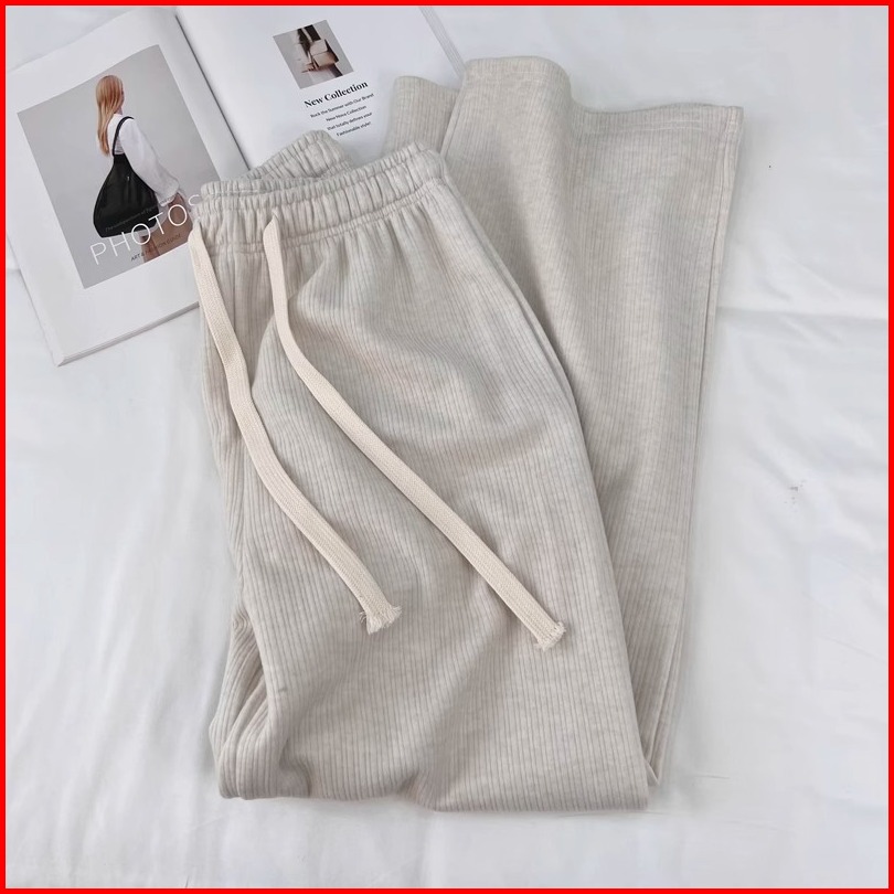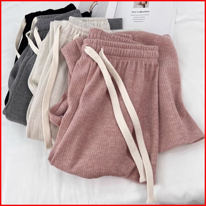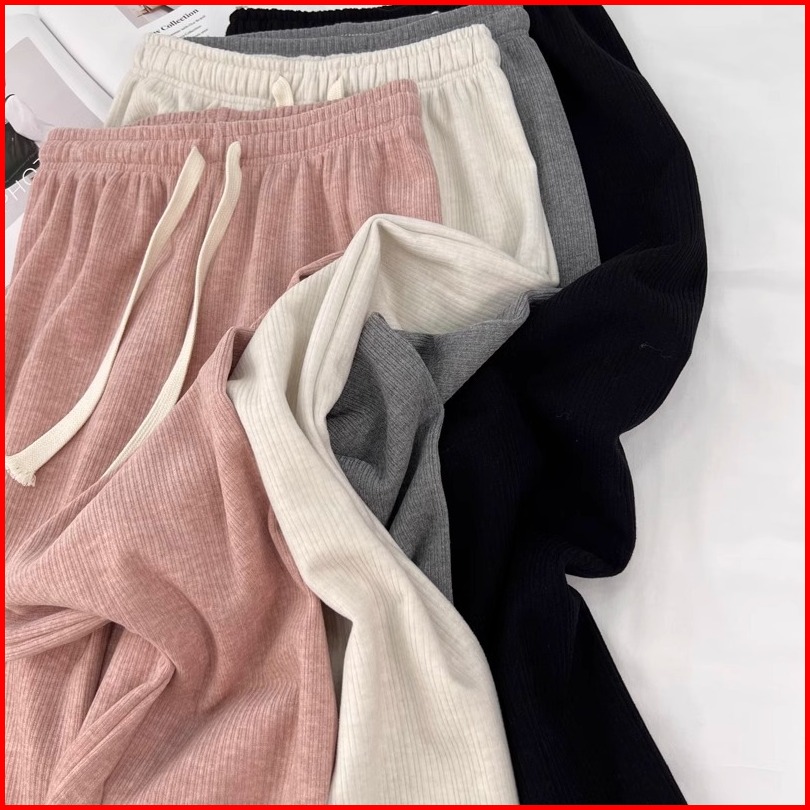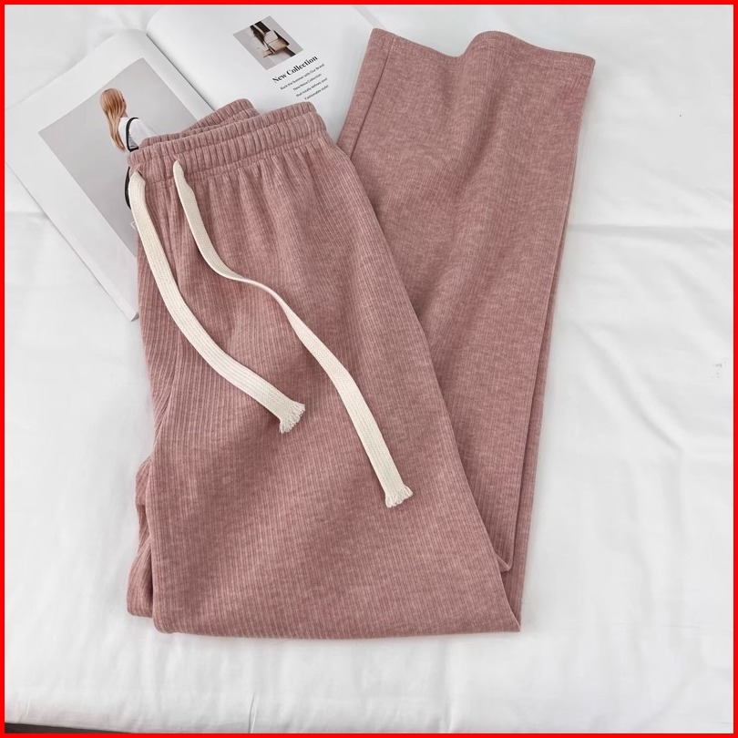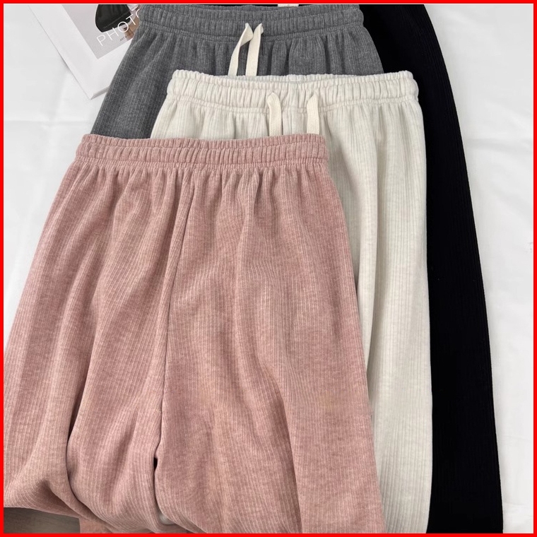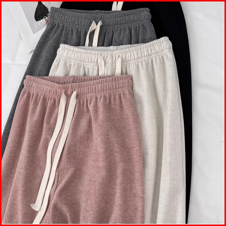 Pink Putih Hitam Abu Abu Highwaist Loose Kasual Celana Panjang Wanita Korean