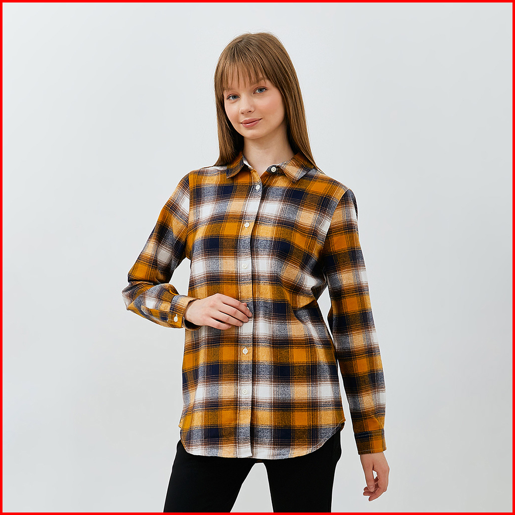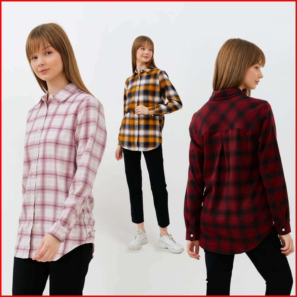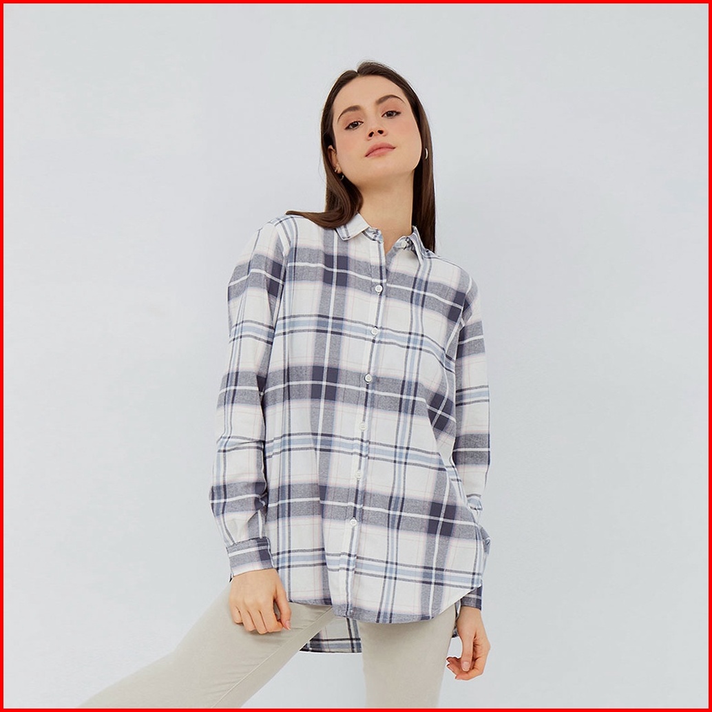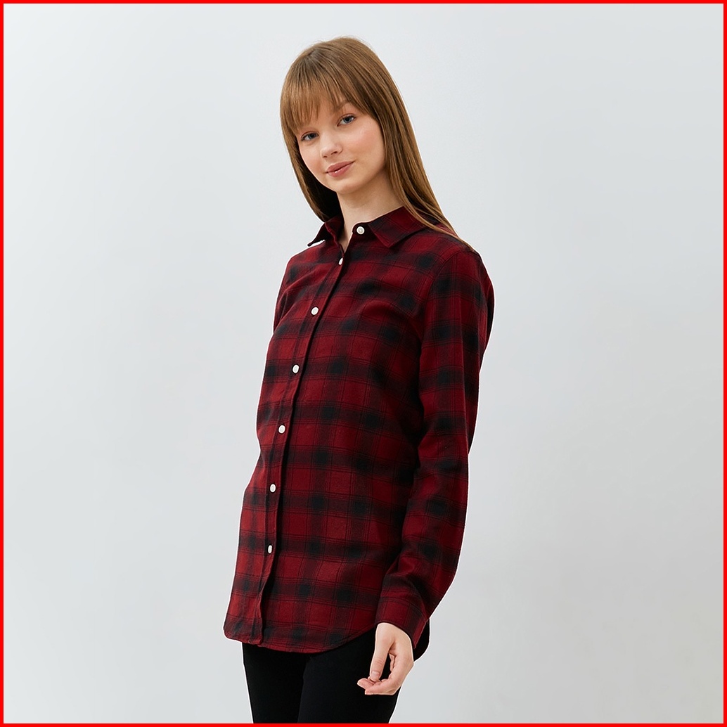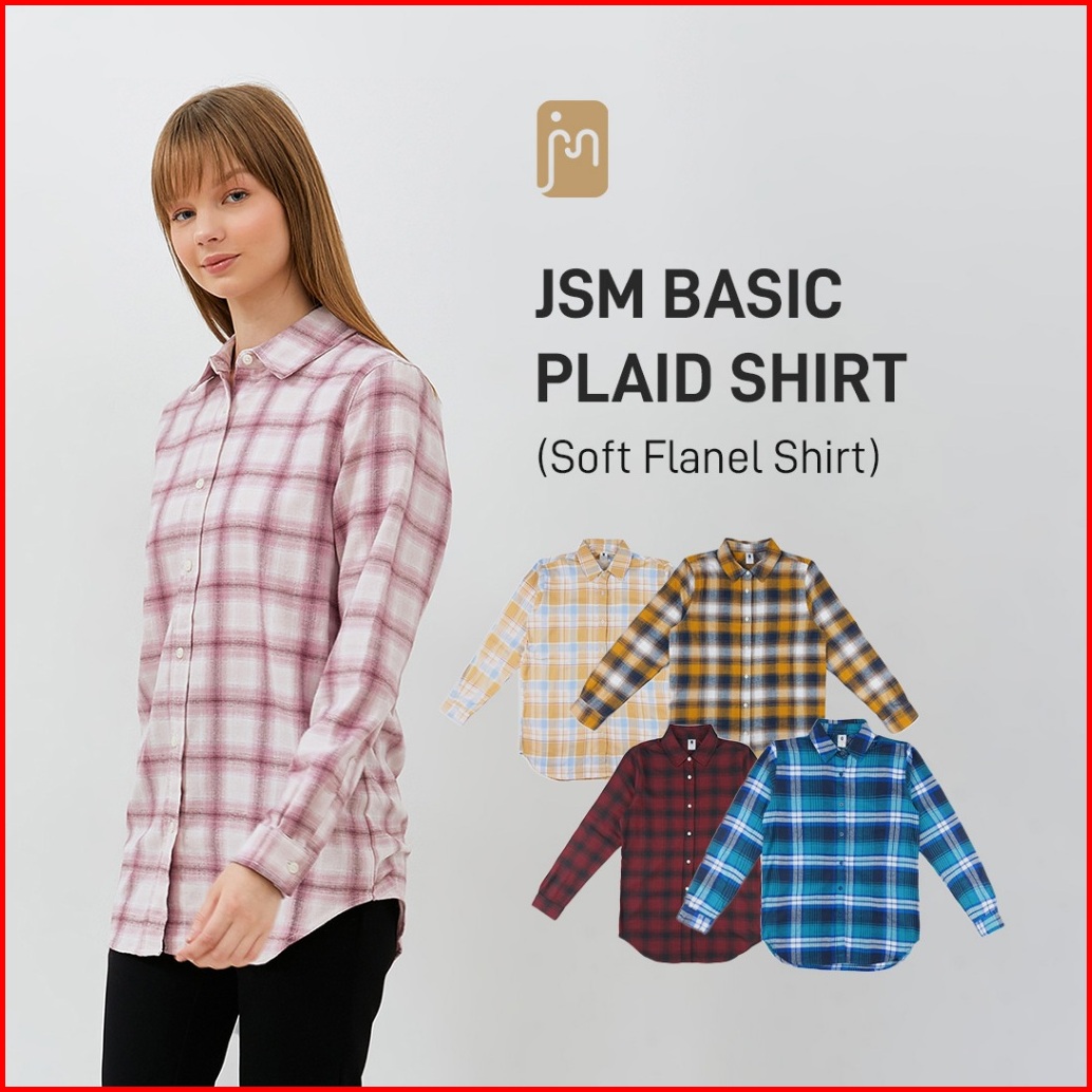 Terlaris Jsm Atasan Kemeja Wanita - Lengan Panjang Basic Plaid Shirt Flanel Kotak Kotak Cotton