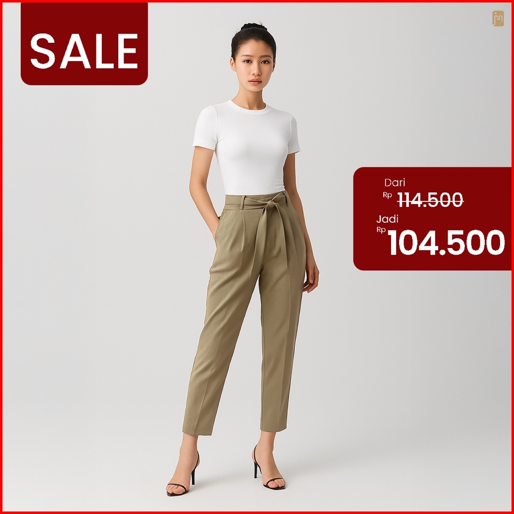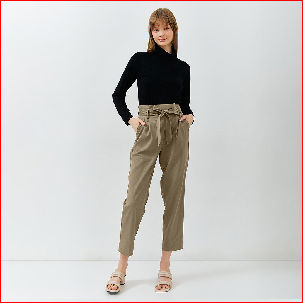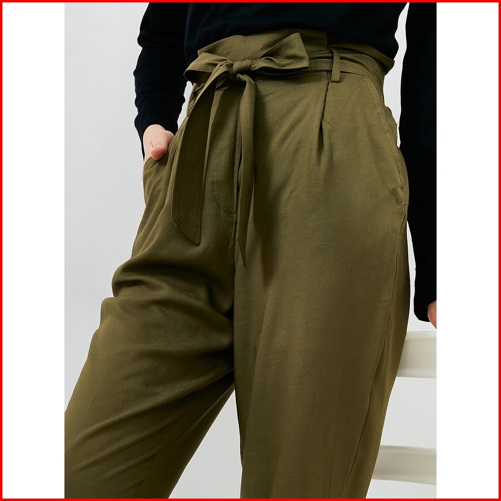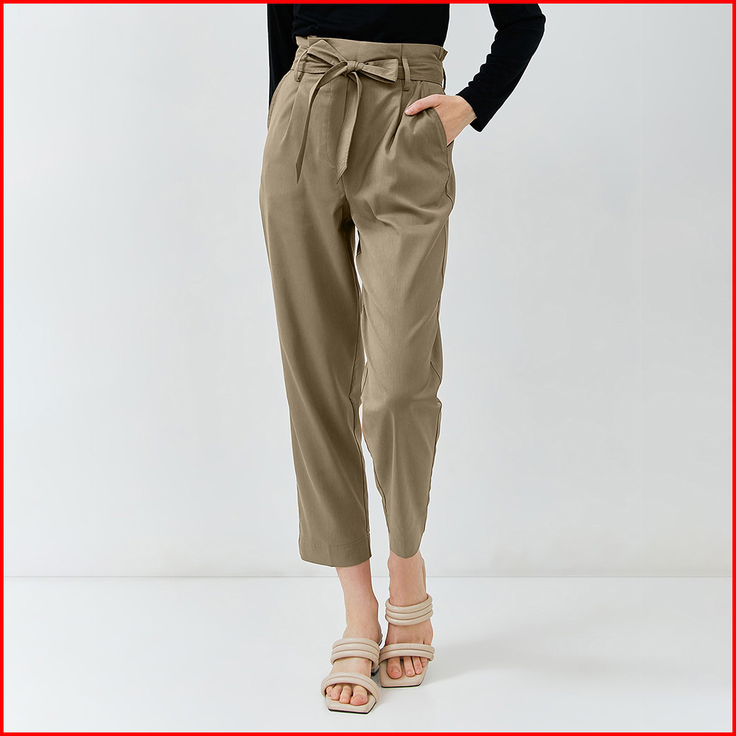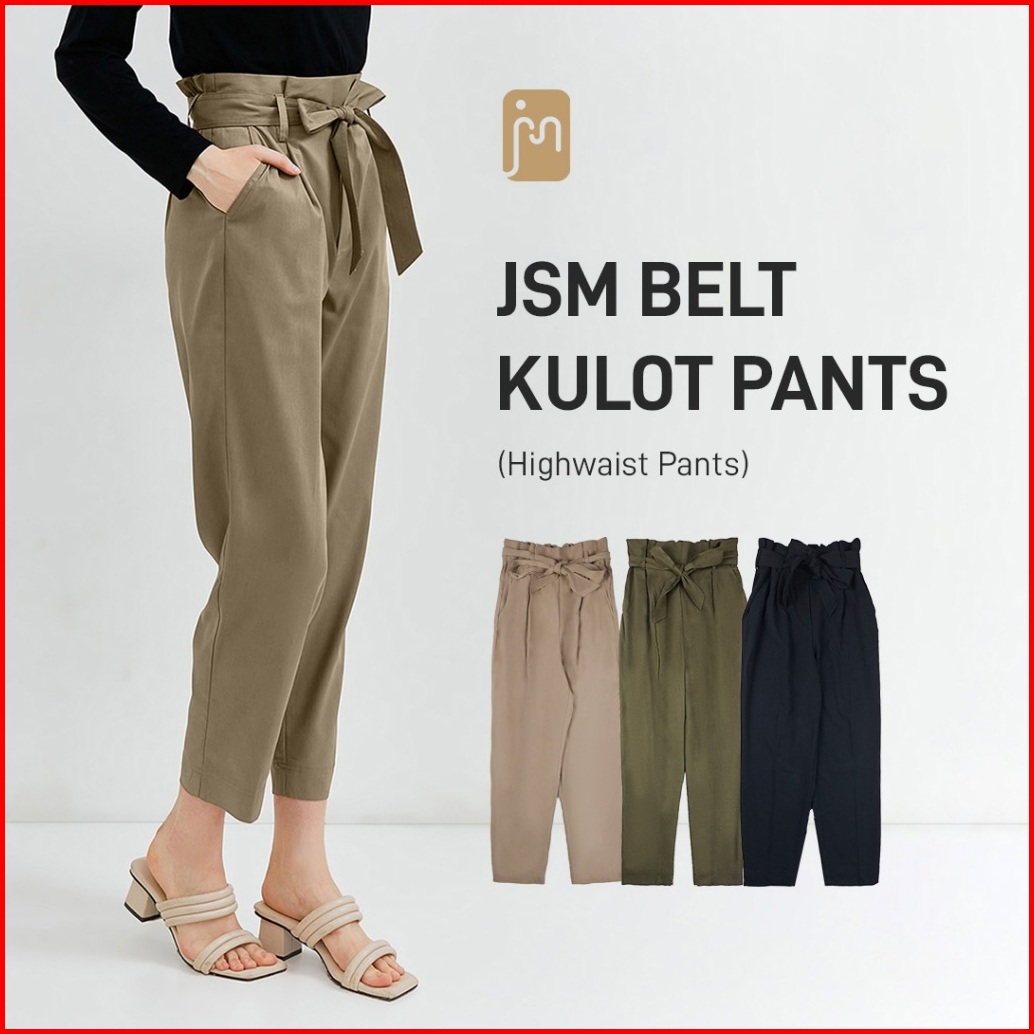 Jsm Celana Kulot Wanita Panjang Belt Kulot - Culotte Long Pants Khaki Cotton Viscose Free Belt