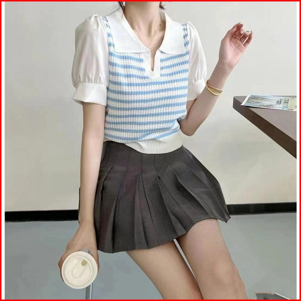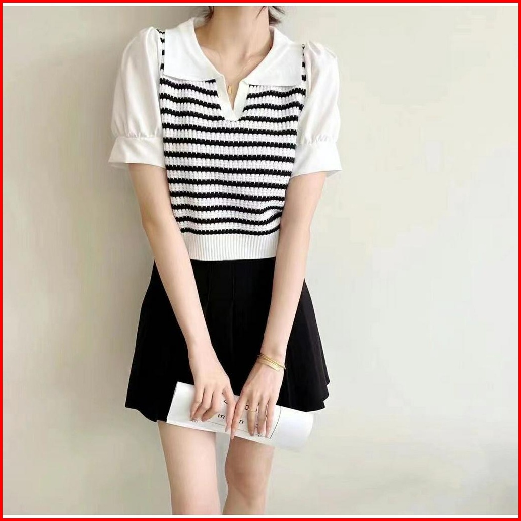 Nelson Blouse Knit Croptop - Atasan Wanita Rajut Tm 01053