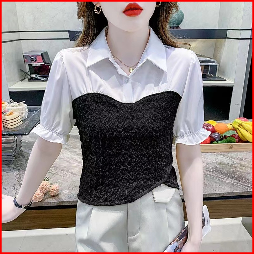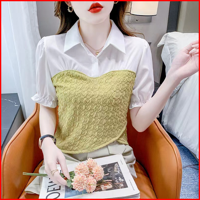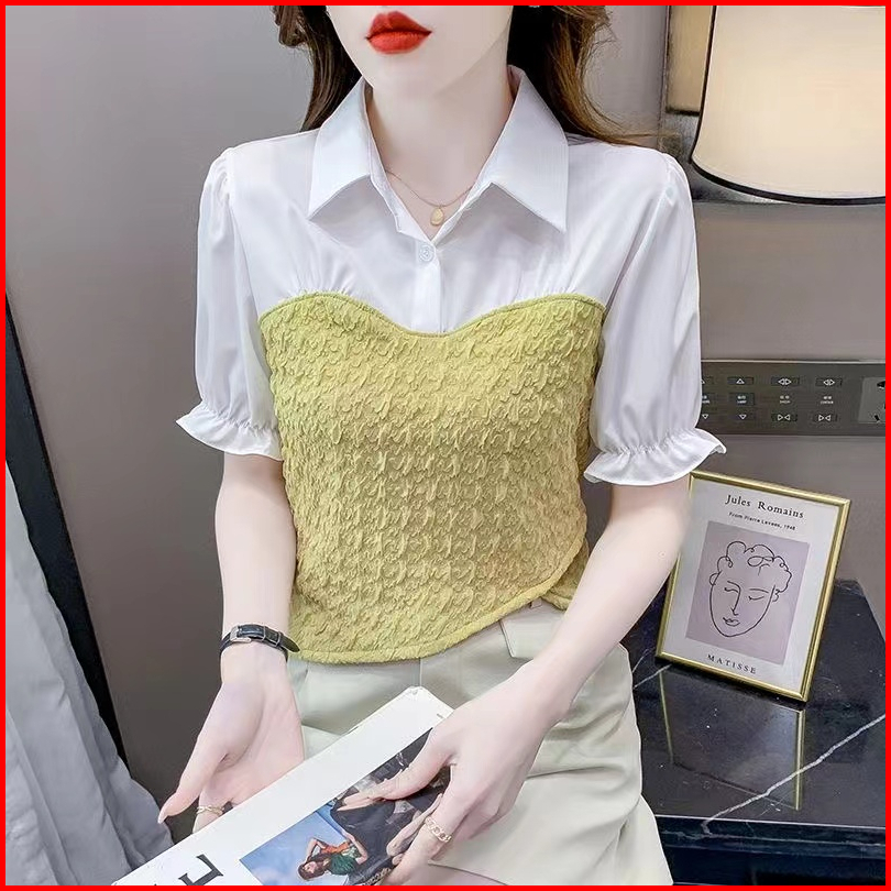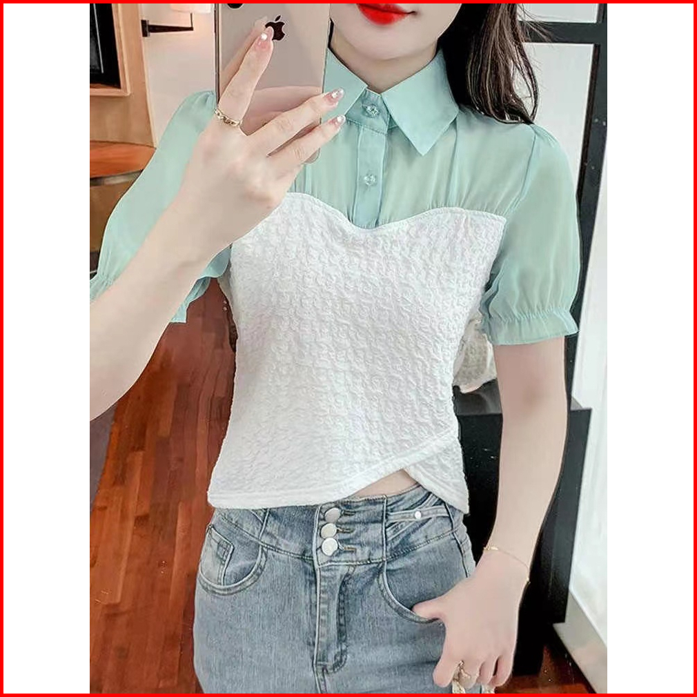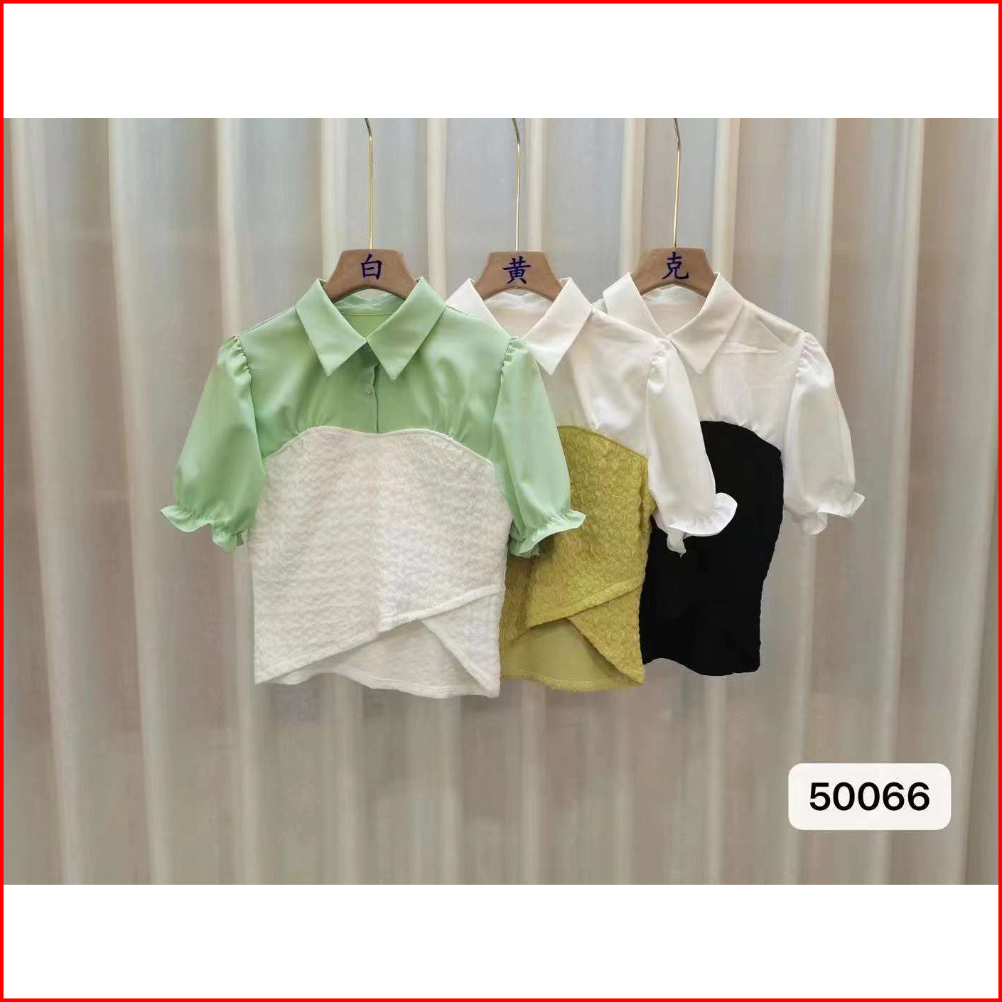Letty Blouse Kemeja Mix Cotton Knit - Rajut Korea Style Atasan Wanita Tm