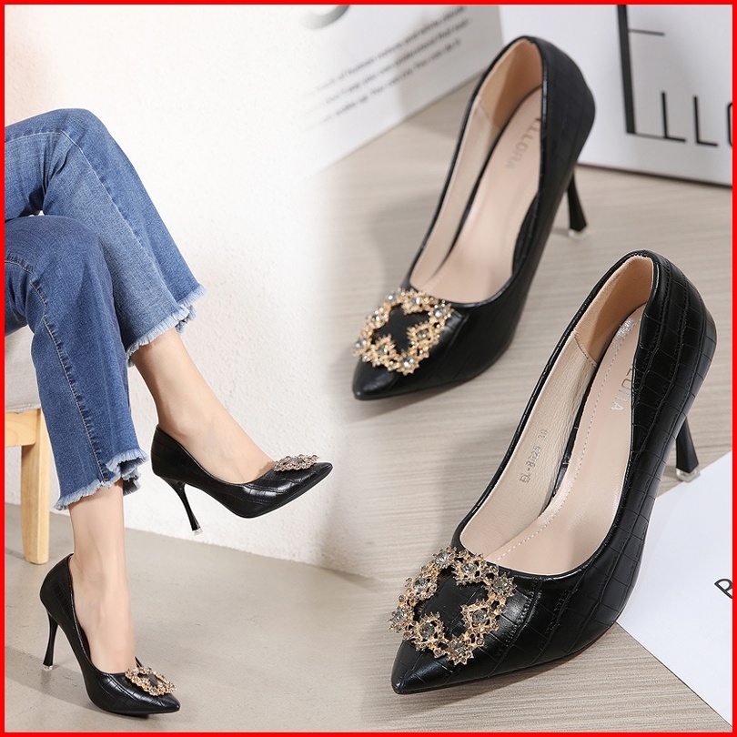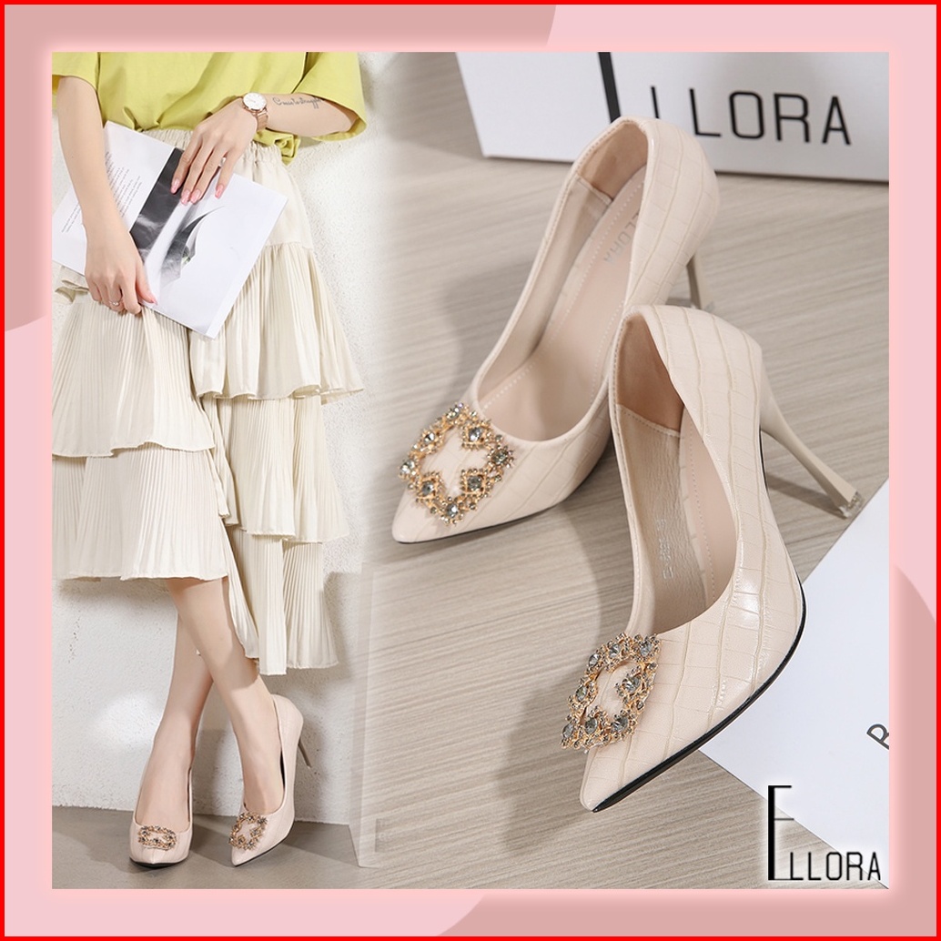 Ellora El-8925 Sepatu High Heels Wanita Kerja 9cm Import Dove Sintetis