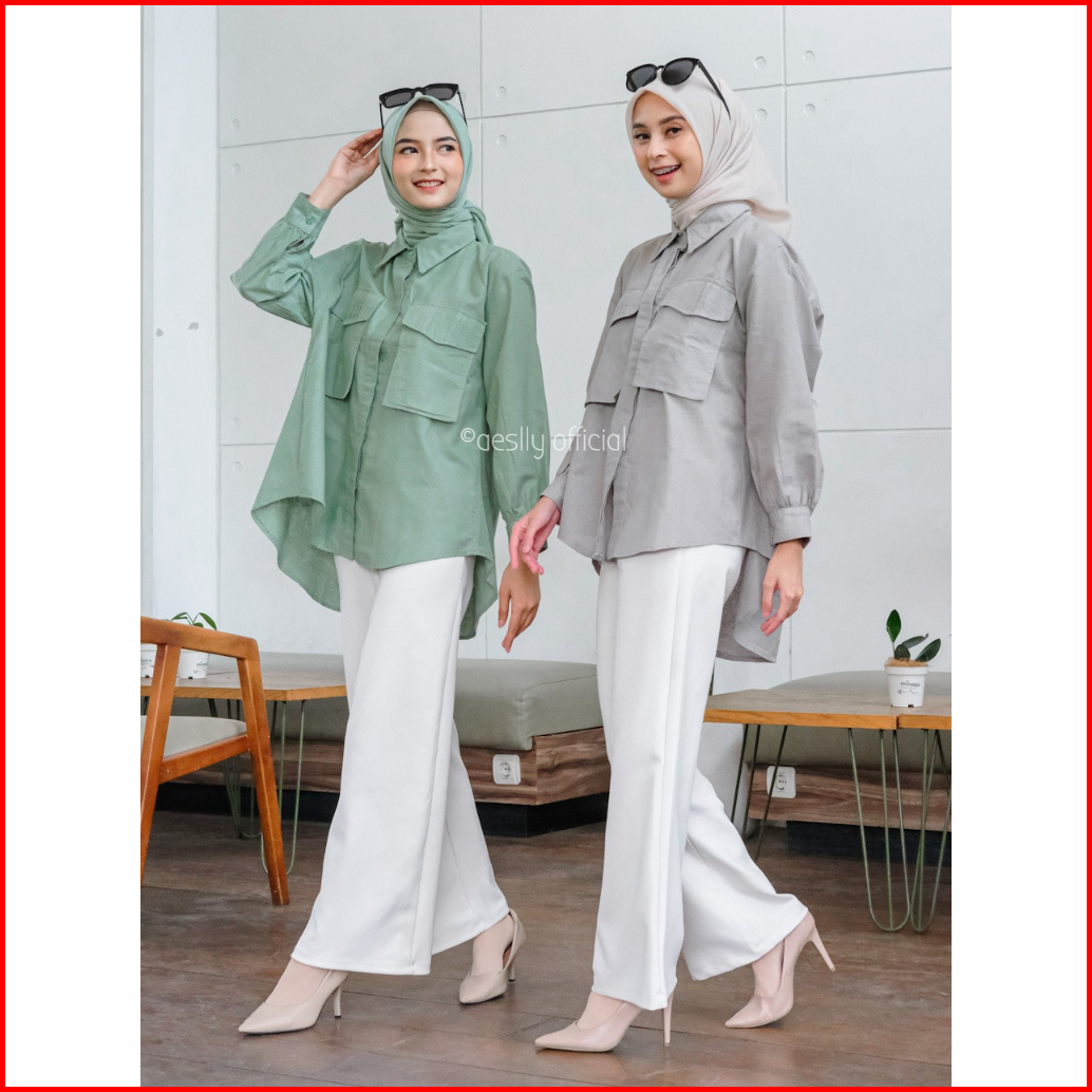 Aeslly - Eleney Blouse Blouse Lengan Panjang Atasan Wanita Atasan Polos Atasan Kantor Atasan Kuliah Kampus Crinkle Cey A
