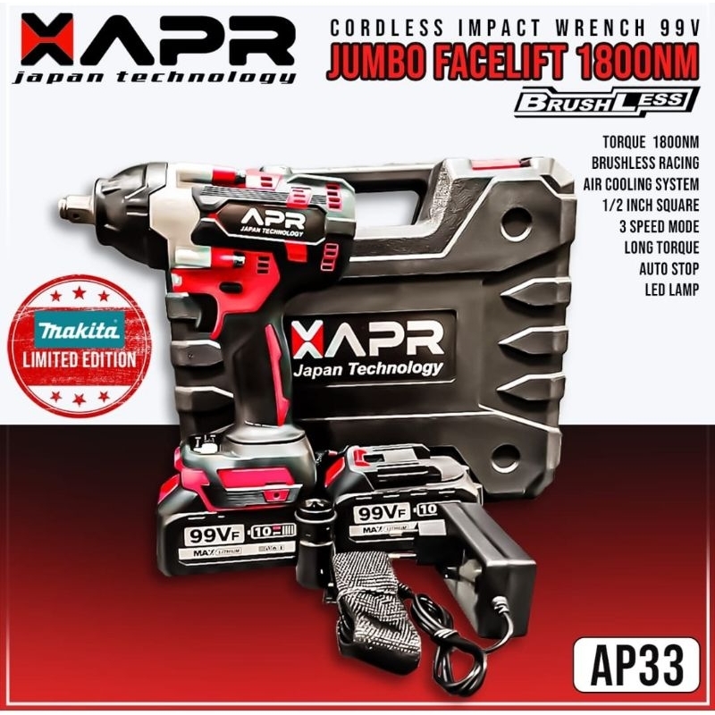 Bor Impact wrench X APR JAPAN JUMBO FACELIFT 2 BATERAI 99VF TORSI 1800NM