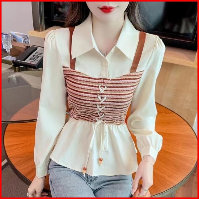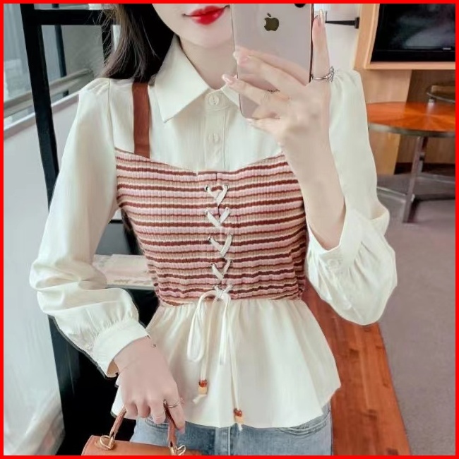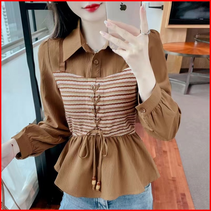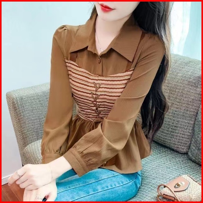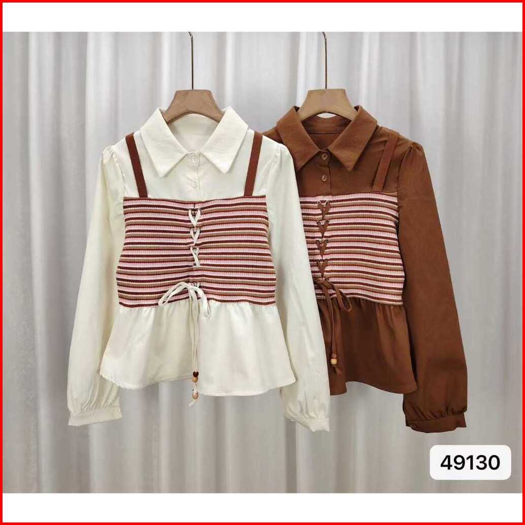 Linky Top Blouse Kombinasi Rajut Kemeja Kantor Knit - Tm 49130