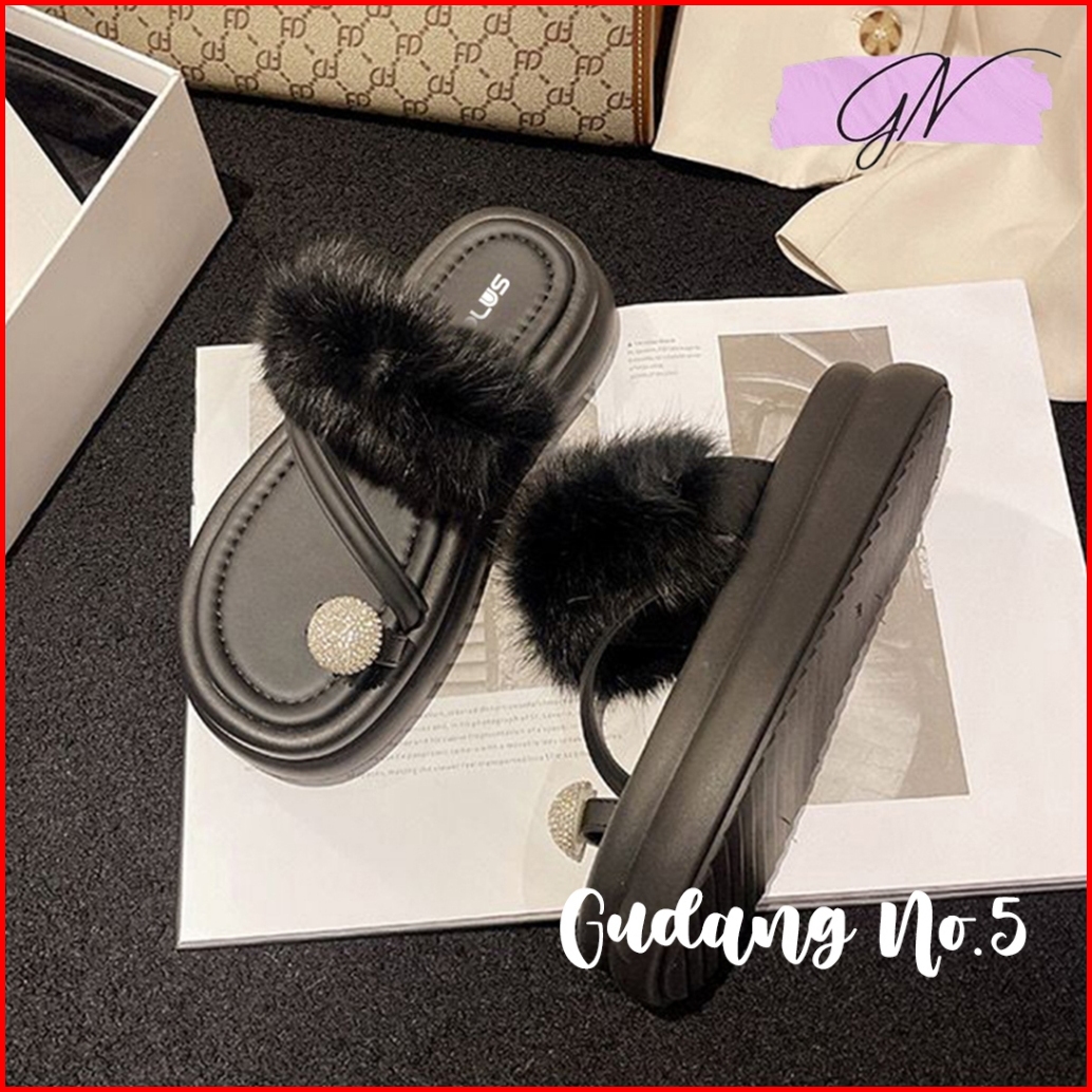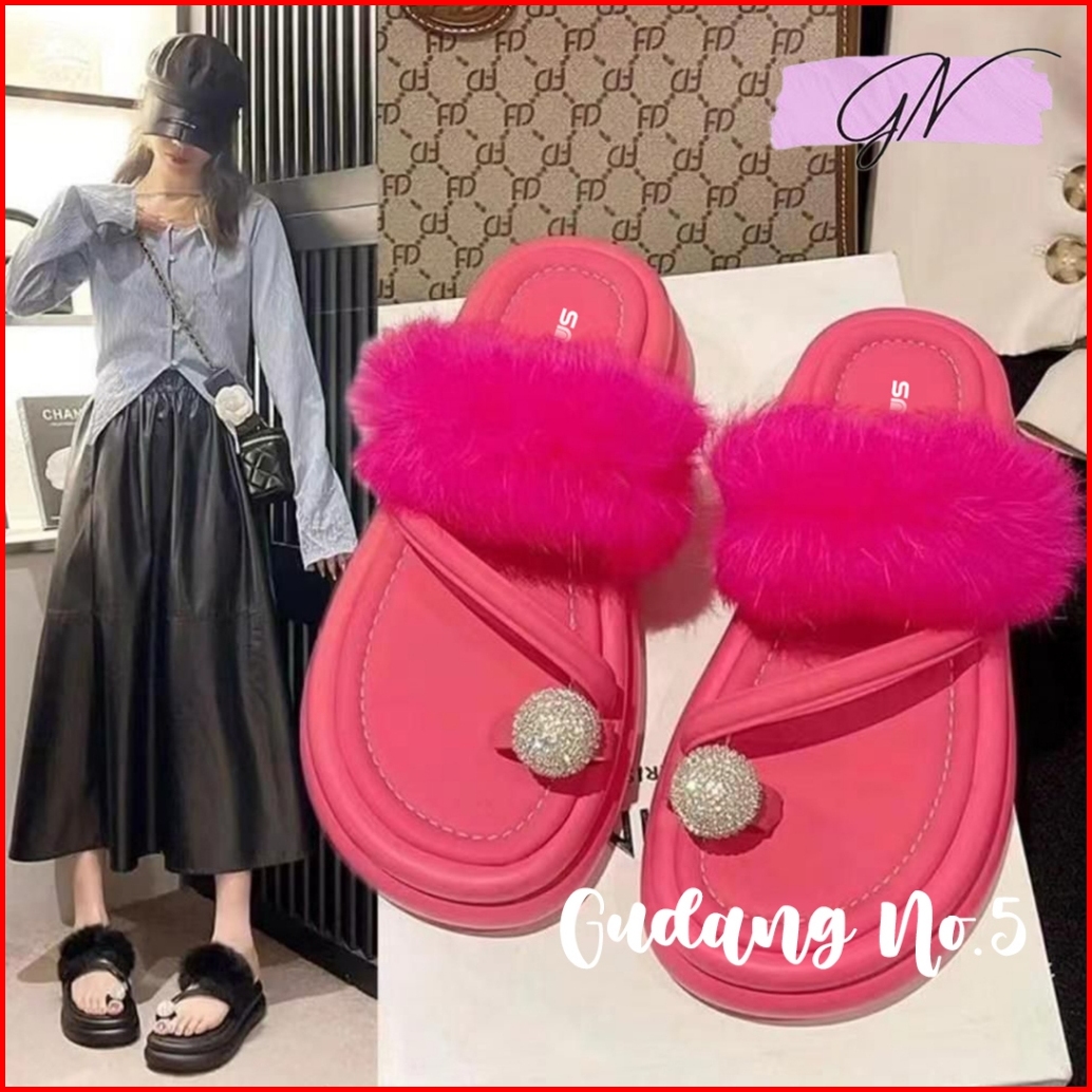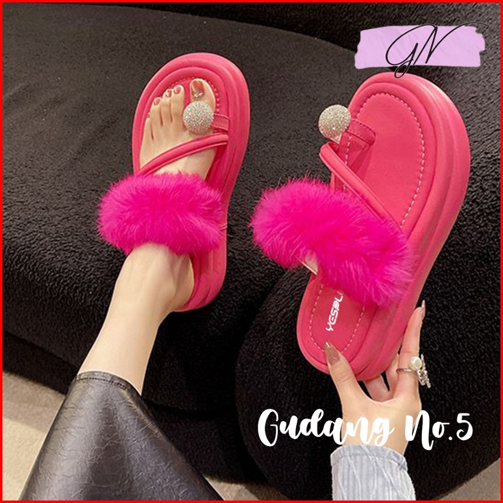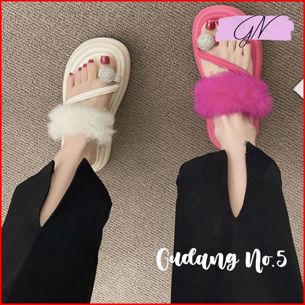 Gn-1248-a Sandal Selop Jelly Sandal Wedges Tali Model Bulu Jempol Jepit Mutiara Import Style Terbaru