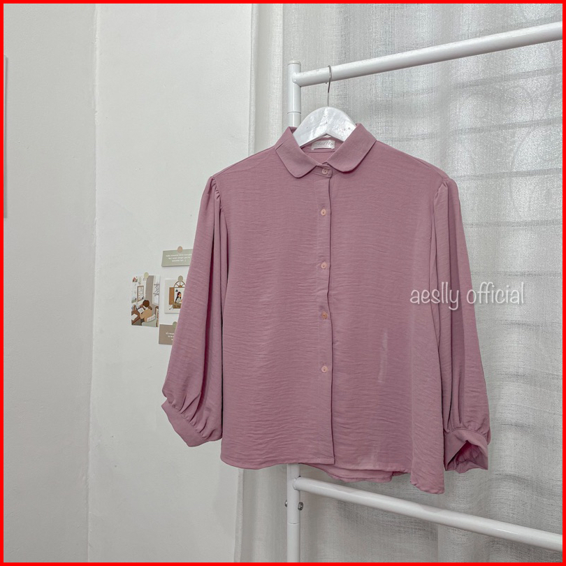 Aeslly - Ayunda Blouse Kemeja Lengan Panjang Balon Cey Crinkle Airflow Atasan Wanita Polos Baju Kantor Kuliah Kampus Kon