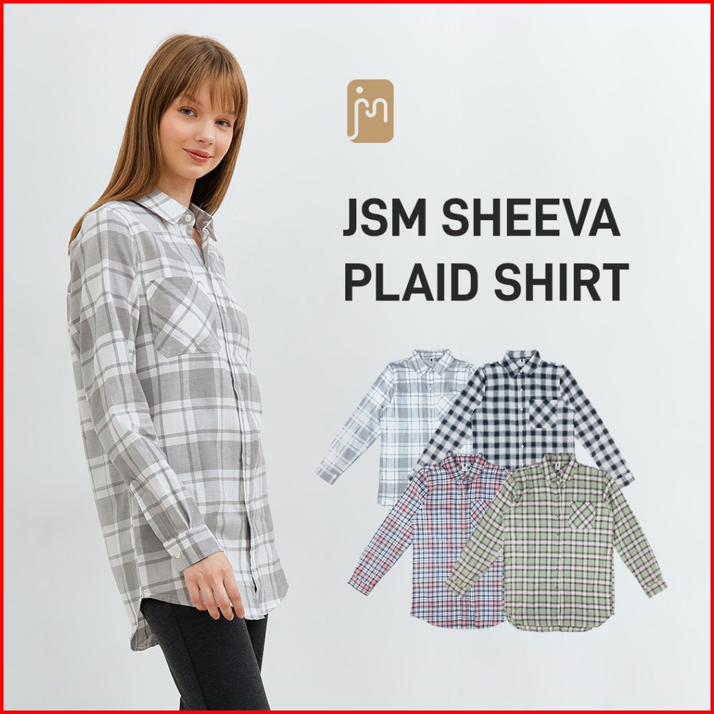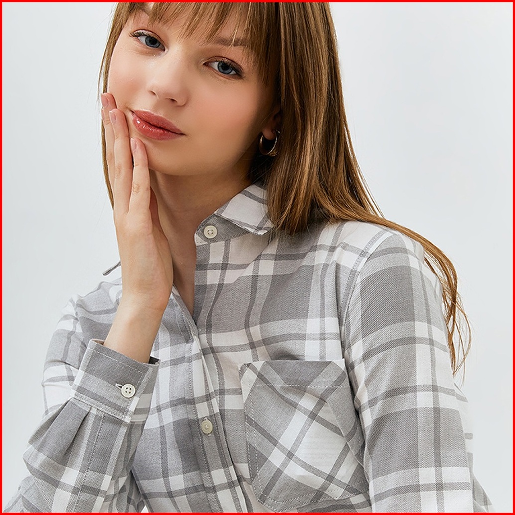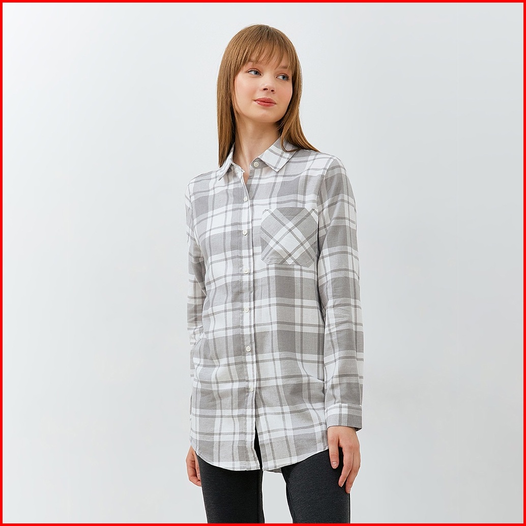 Jsm Kemeja Wanita Lengan Panjang Kotak Kotak Sheeva - Oversize Shirt Grey Cotton Fleece With Pocket