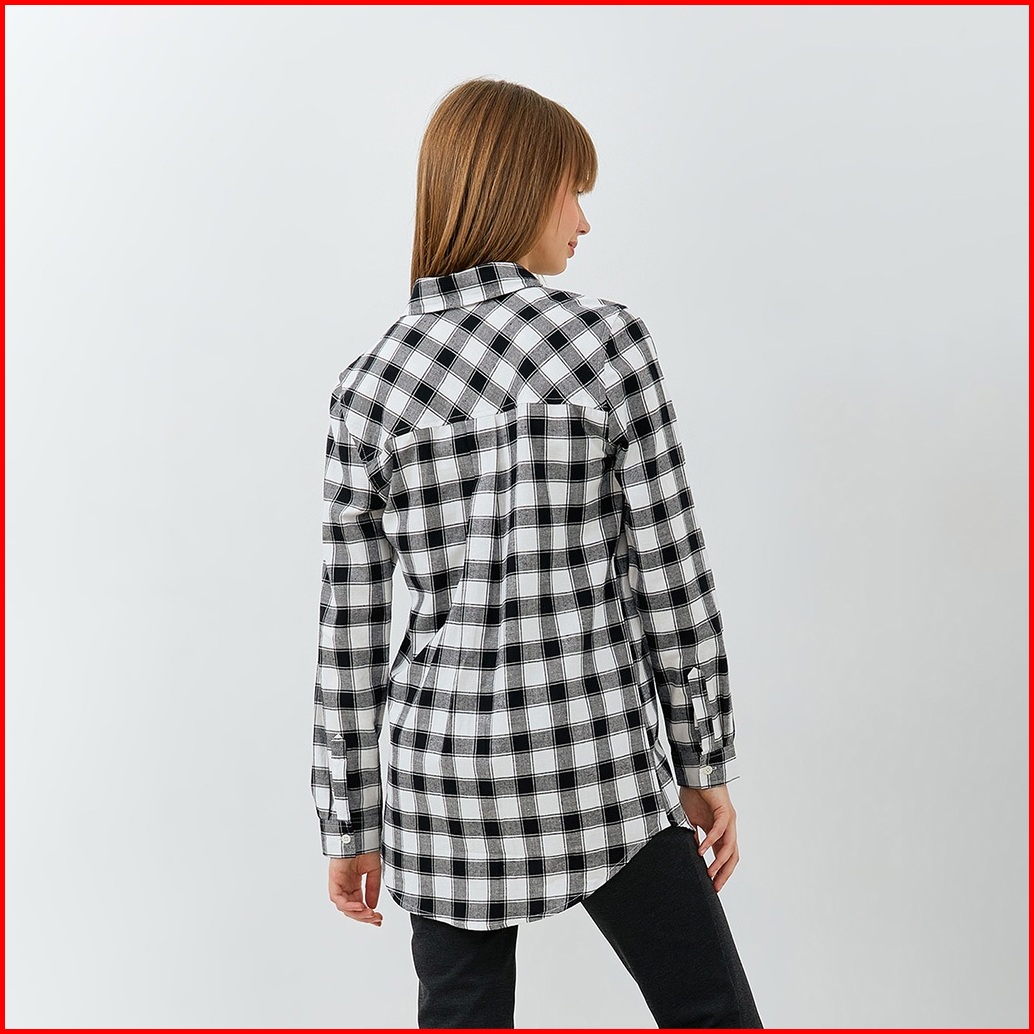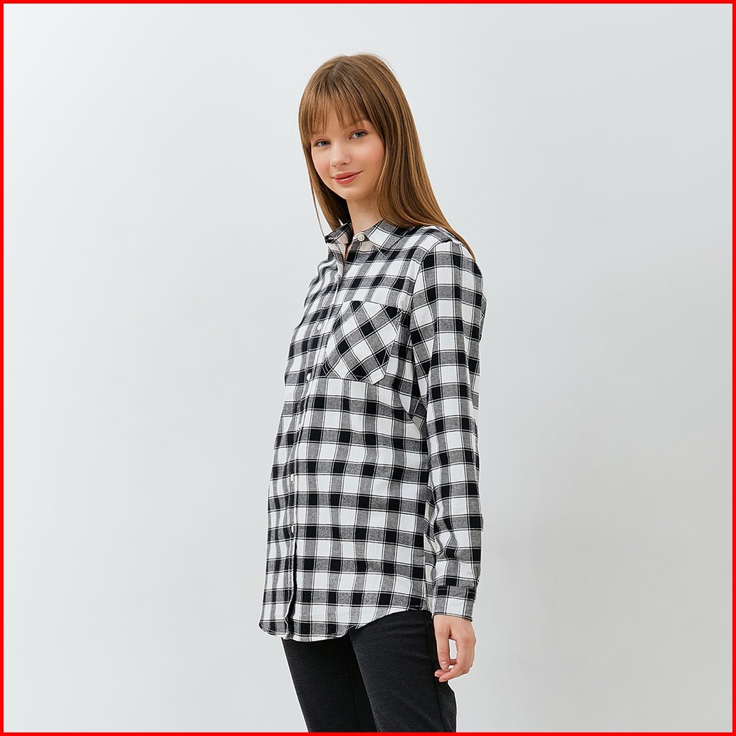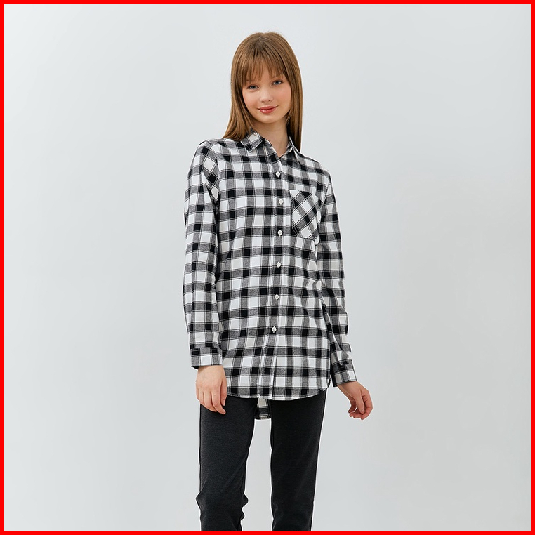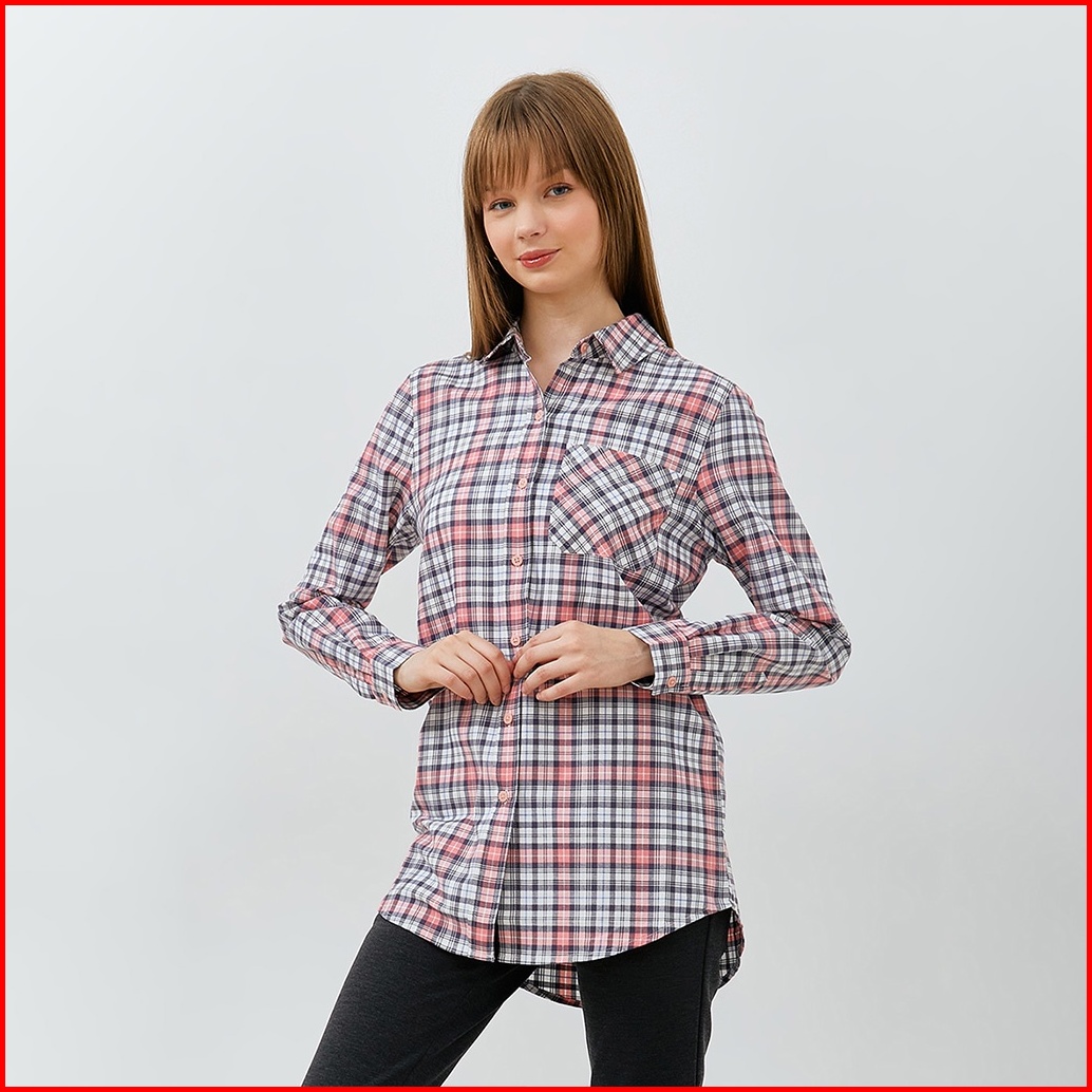 Jsm Kemeja Wanita Lengan Panjang Kotak Kotak Sheeva - Oversize Shirt Grey Cotton Fleece With Pocket