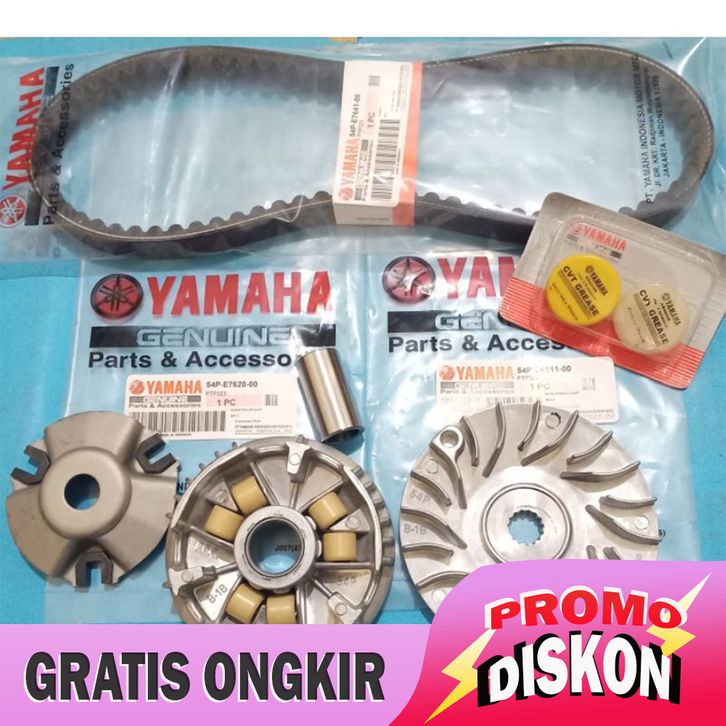 54P(MIO J) PAKET CVT RUMAH ROLLER ASSY PLUS VANBELT PLUS KIPAS PULLY MOTOR MIO J SOUL GT 115 FINO FI 115 GRATIS GEMUK
