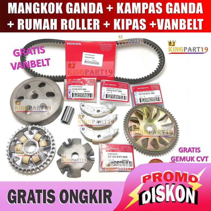 [Mall] PAKET CVT LENGKAP BEAT SCOOPY SPACY KARBU - MANGKOK KAMPAS RUMAH ROLLER KIPAS VANBELT - KVY