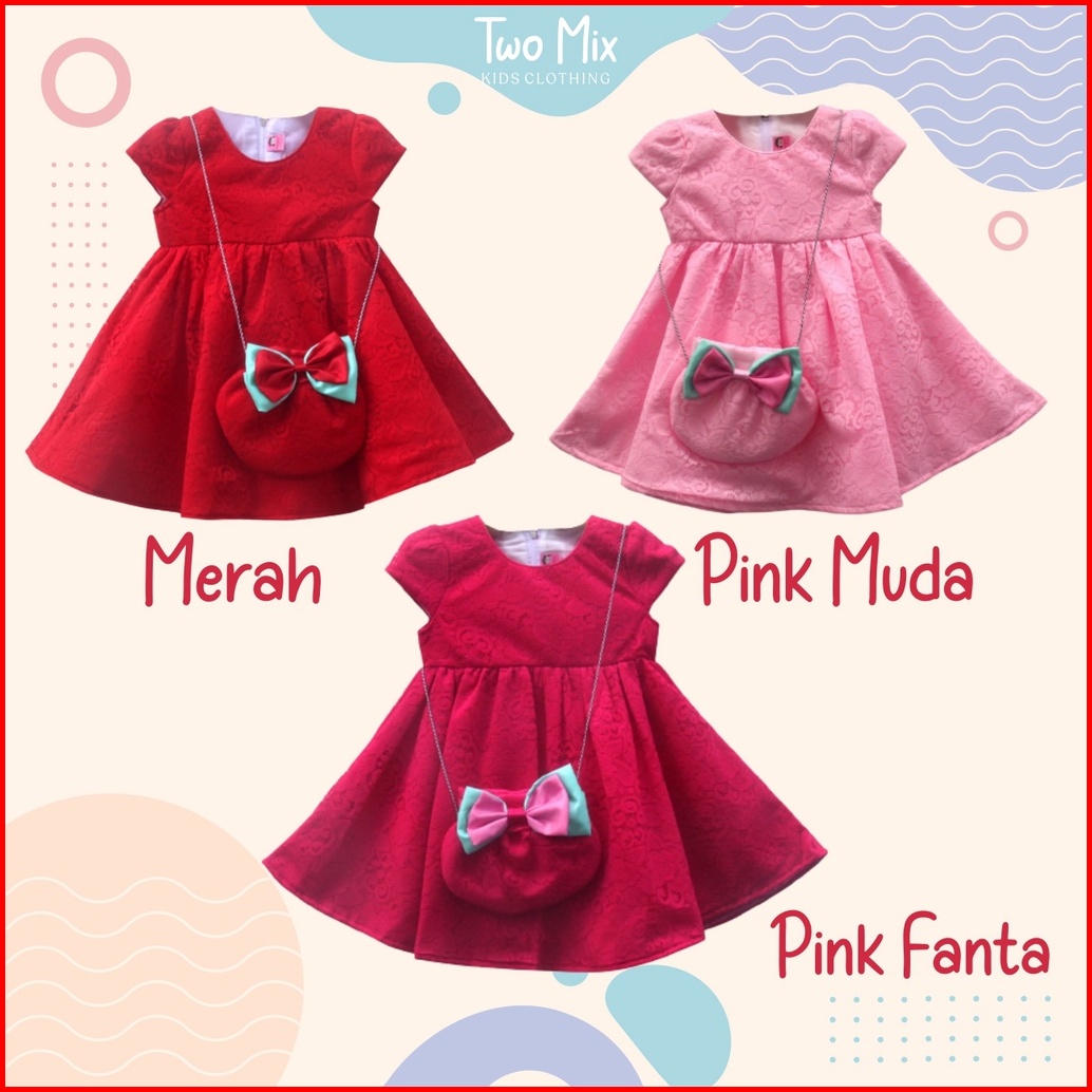Two Mix - Baju Dress Bayi Perempuan Newborn Pesta 0-12 Bulan Tas Lucu Sni 2839