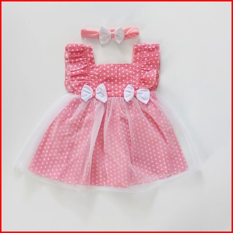 Baju Bayi Perempuan Dress Bando 0 6 Bulan Polka Kado Bayi Baby Girl Lucu