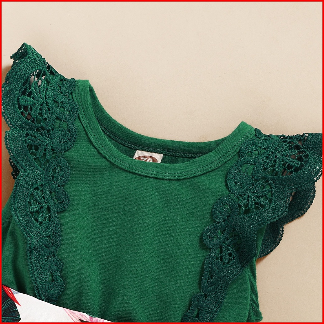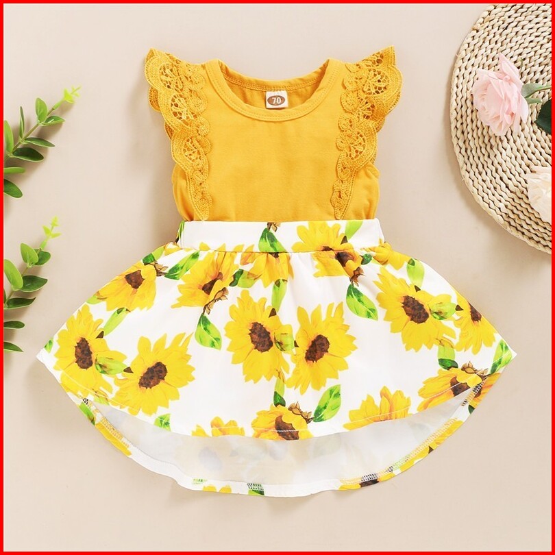 Haasya Kids 0-2 Tahun Newborn Baby Girl Dress Cotton Floral Sleeveless Lace Fly Sleeve Loose Waist Skirt Cute Princess S