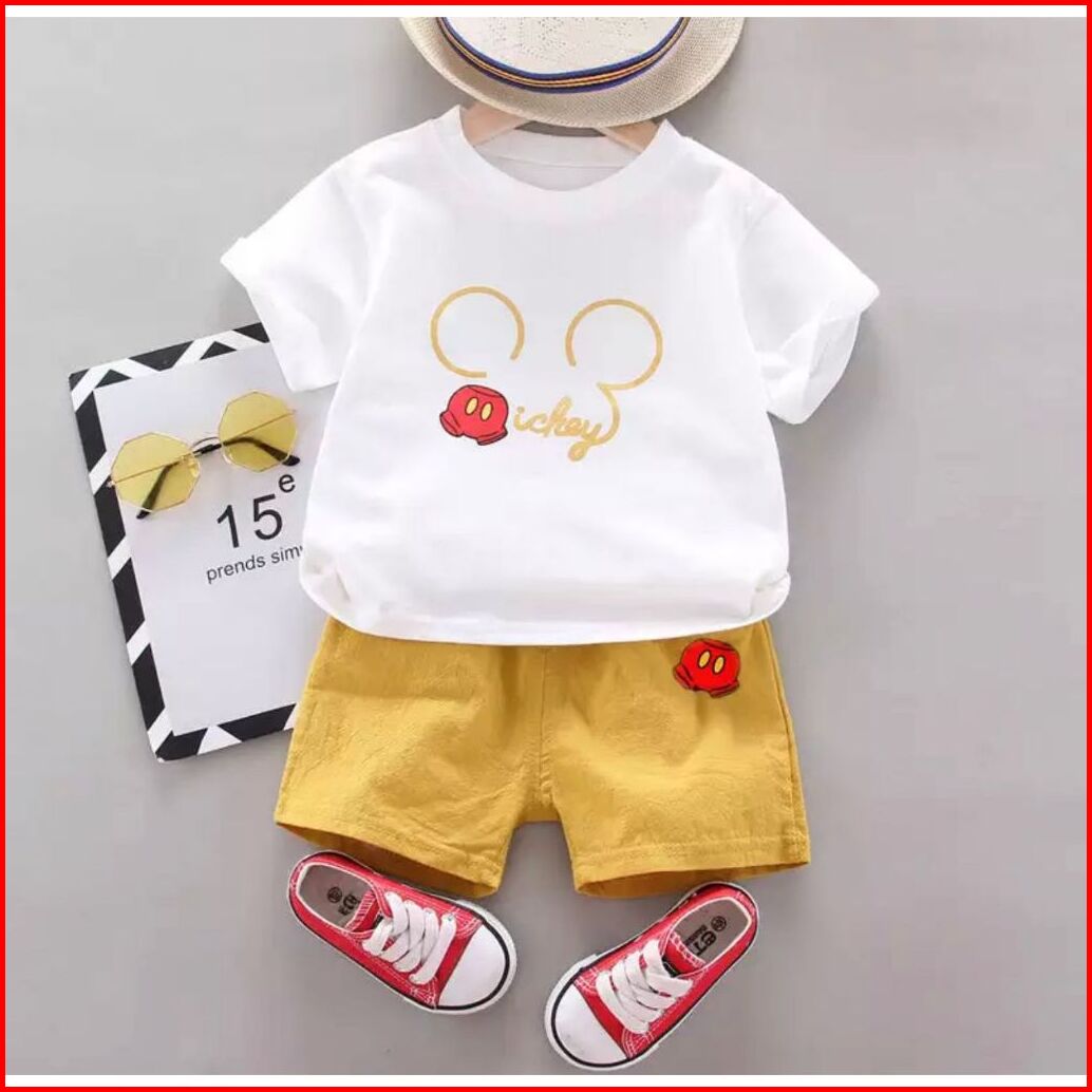 Setelan Anak Kaos Anak Celana Pendek Anak Laki-laki Dan Perempuan Motif Miki Mouse Usia 1-5 Tahun Top Fashion Anak Baju