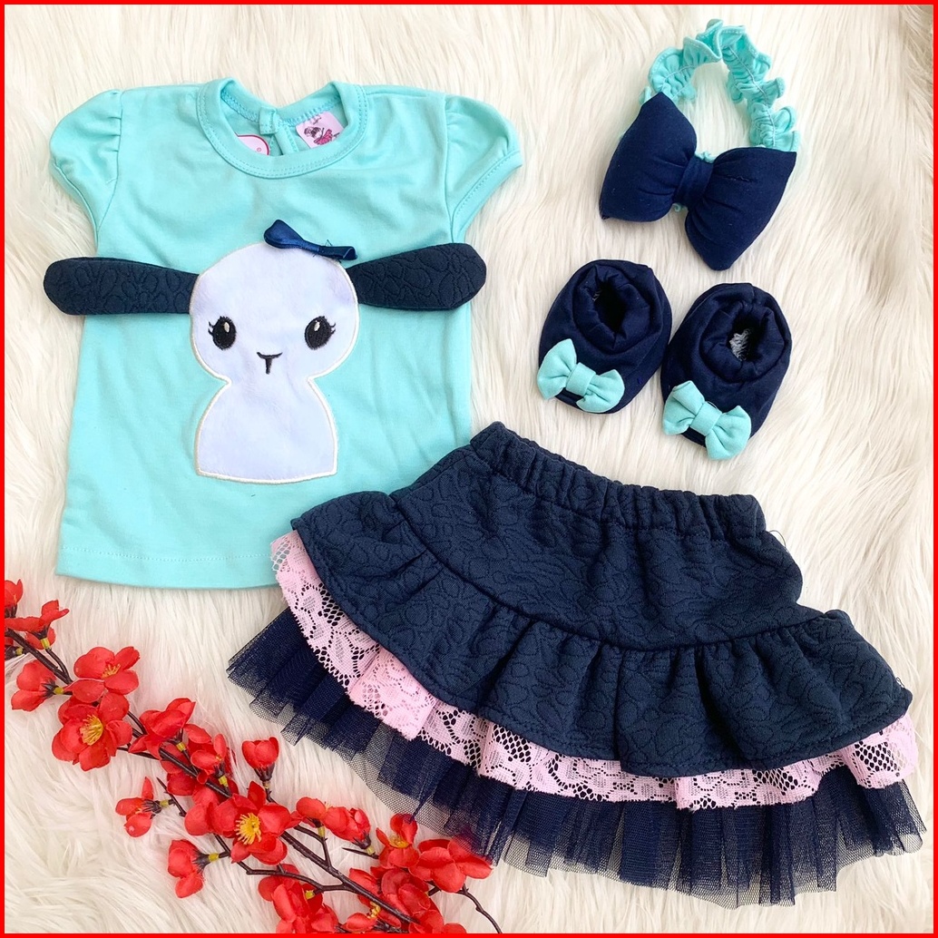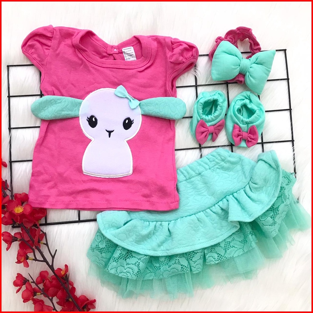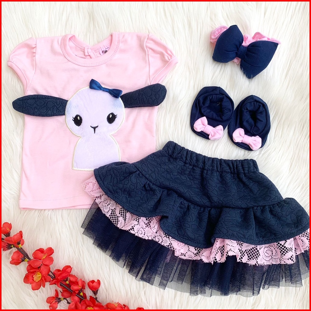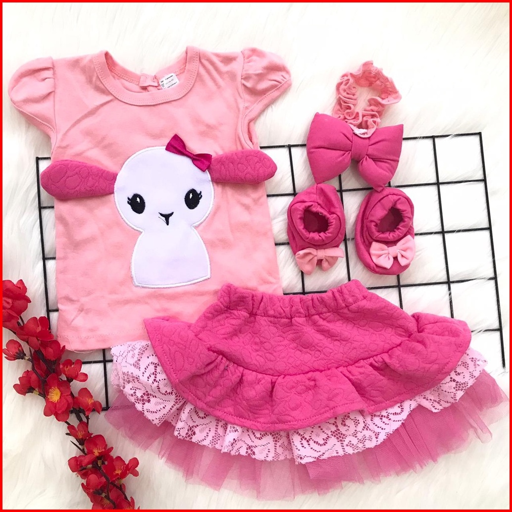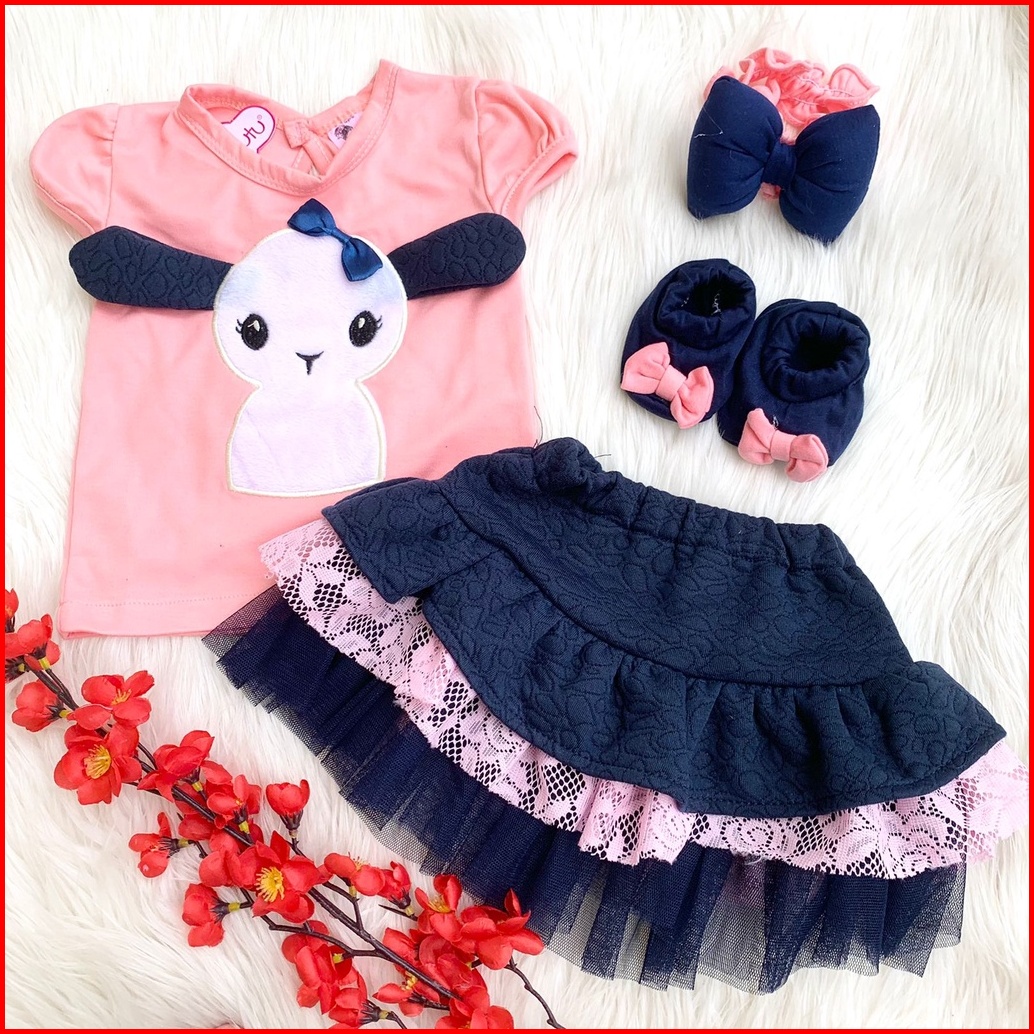 Baju Setelan Kaos Rok Tutu Bandana Sepatu Fashion Anak Bayi Cewek Perempuan Baby Girl Murah -she