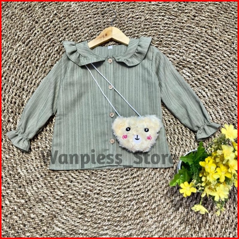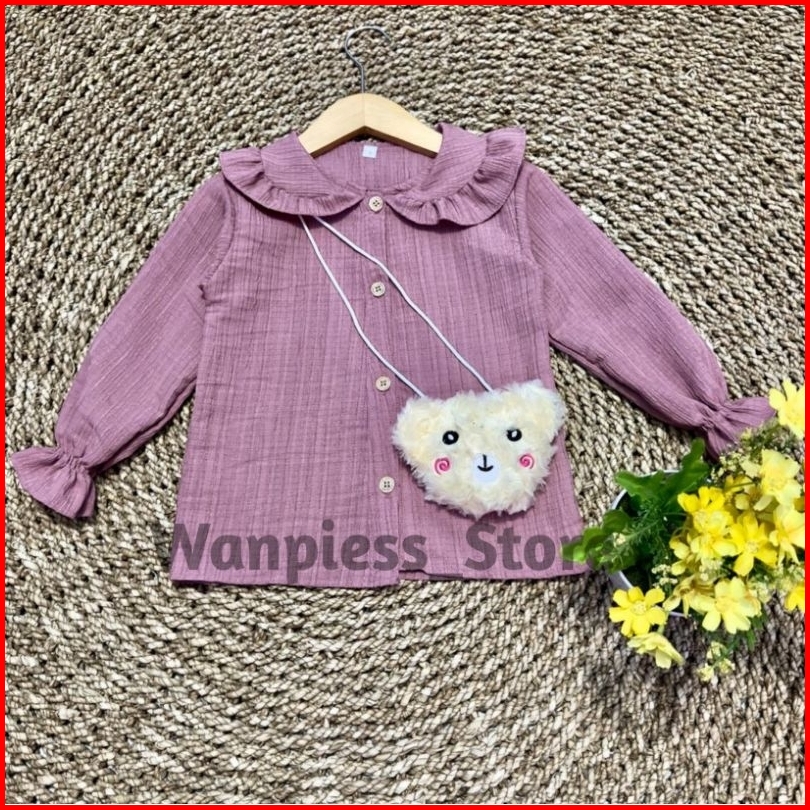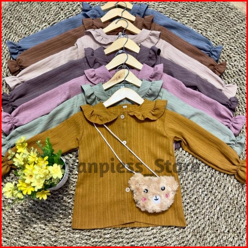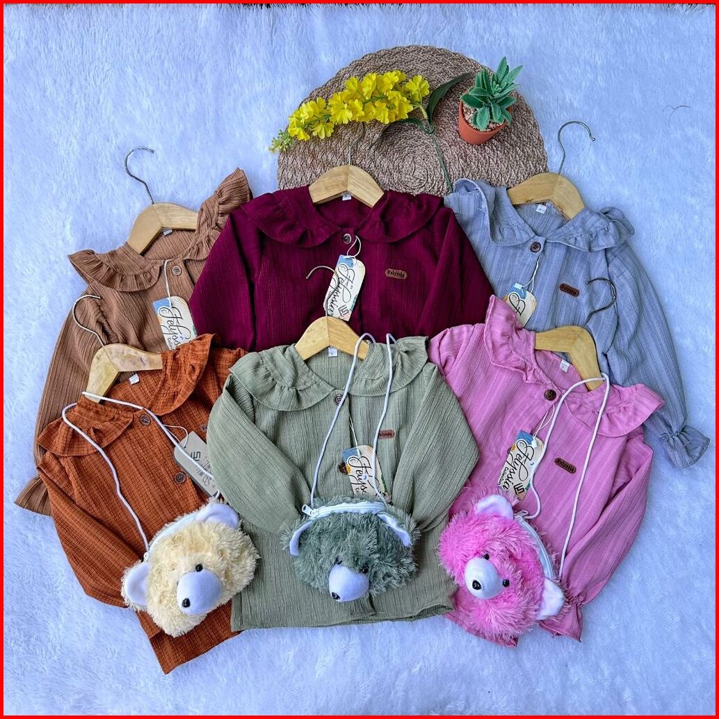 Kemeja Blouse Anak Perempuan Umur 2-7 Tahun Kain Lady Cruse Dan Free Tas Boneka