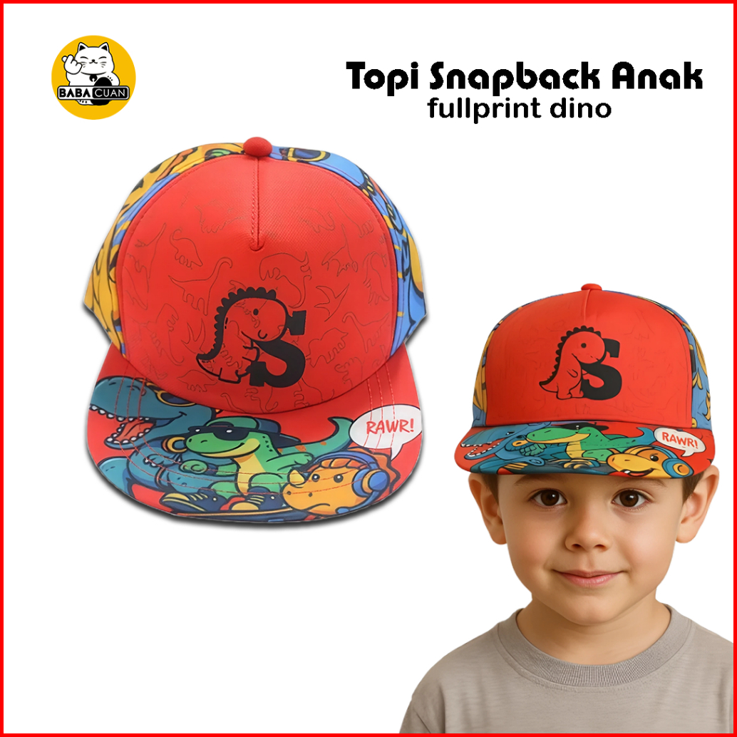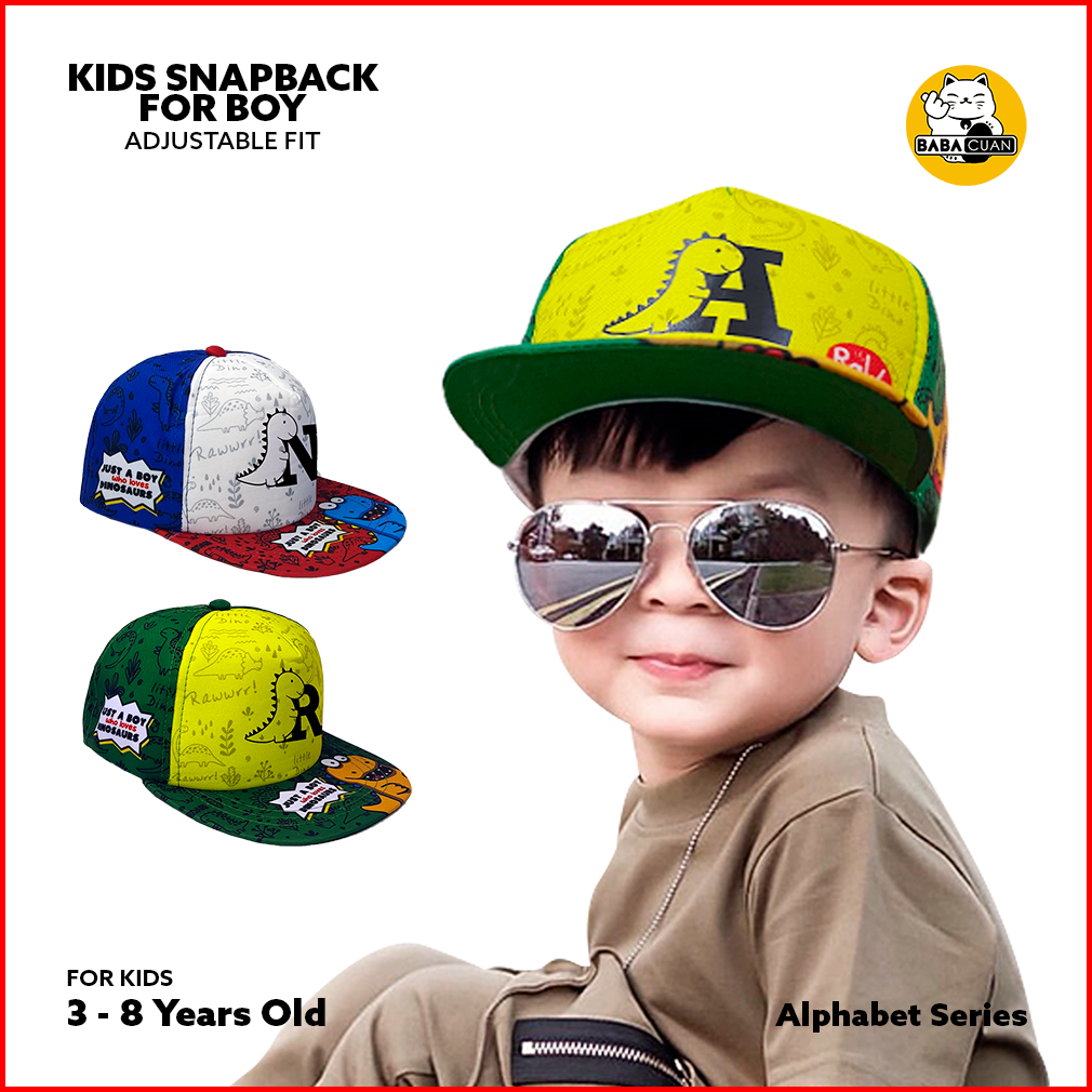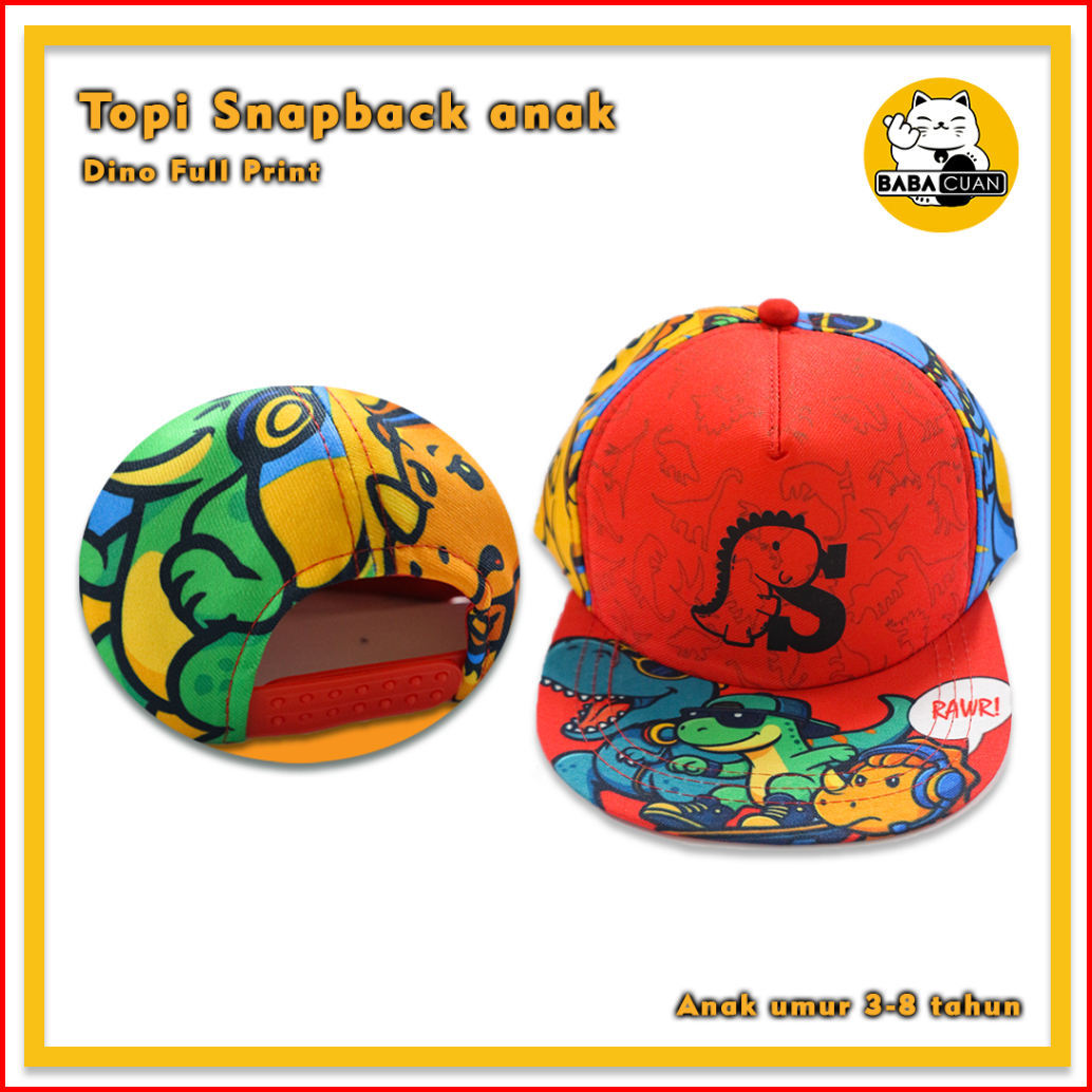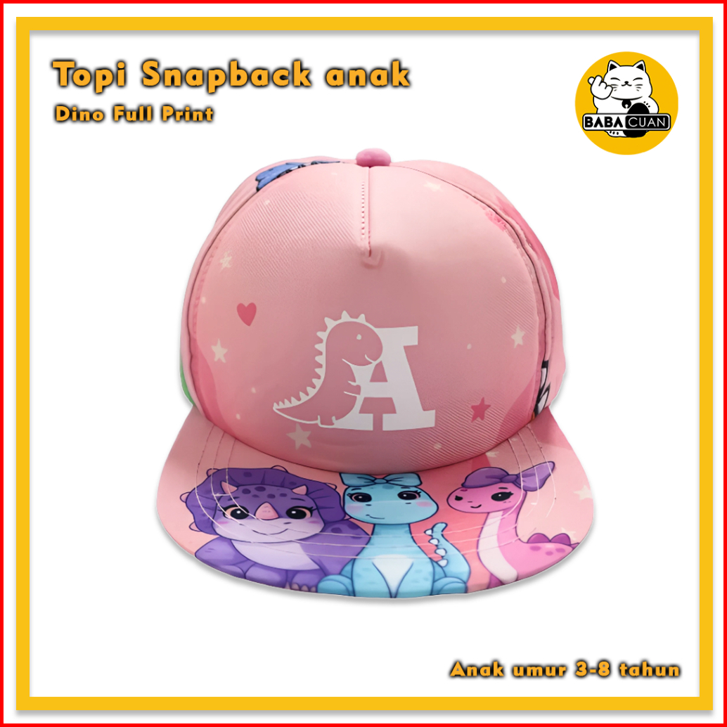 Topi Anak Snapback Fullprint Alfabet Dino Huruf A-z Series