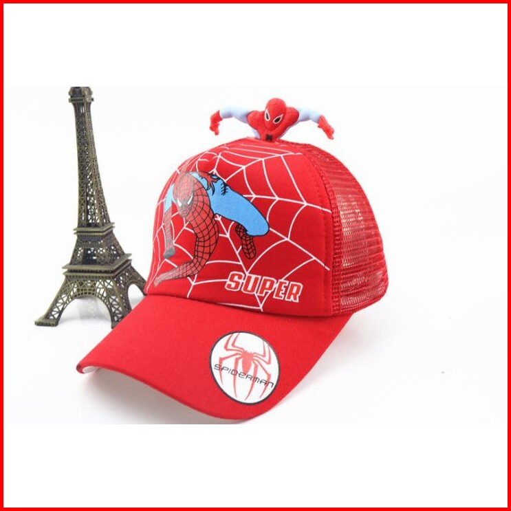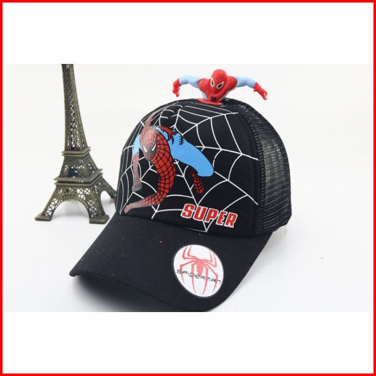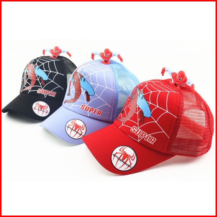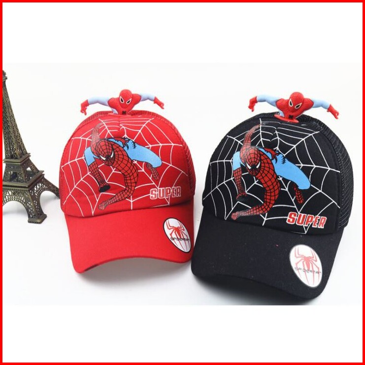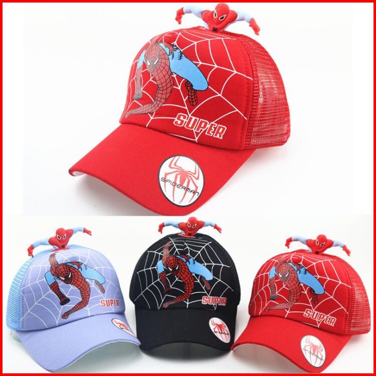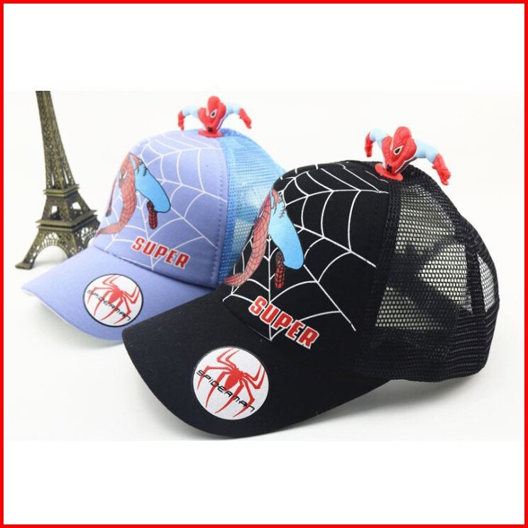 Topi Baseball Anak Spiderman Untuk Laki Laki Perempuan Unisex Model Jaring Net Dengan Figurine