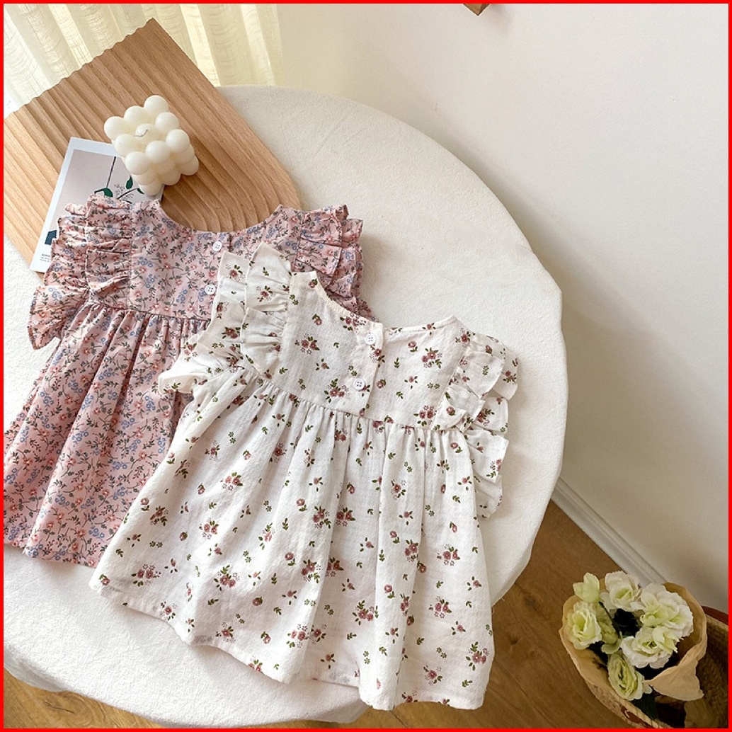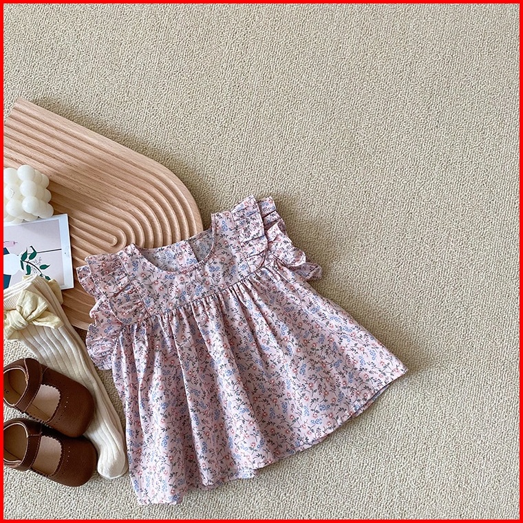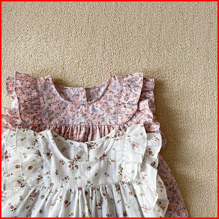 Haasya Kids Kemeja Bayi Dan Balita Korea Atas 0-3 Tahun Bayi Perempuan Musim Panas Katun Tipis Lengan Terbang Renda Bone
