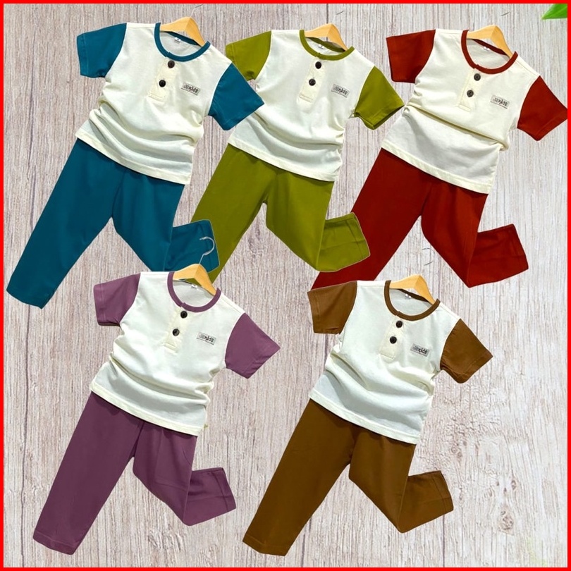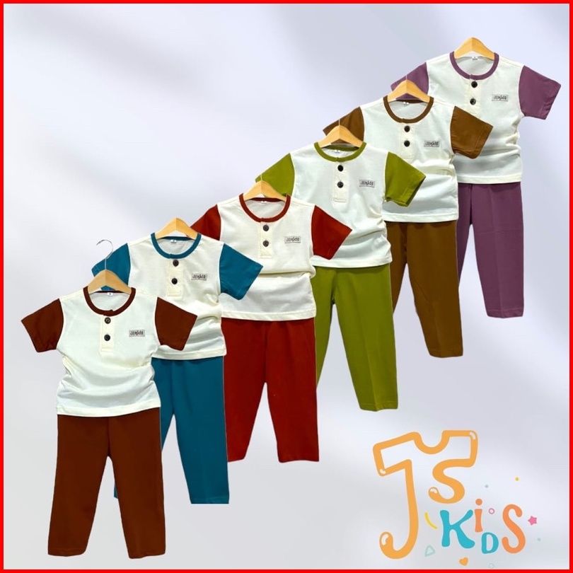 Jisa Kids - Baju Anak Setelan Anak Kombinasi Warna Baju Pendek Celana Panjang